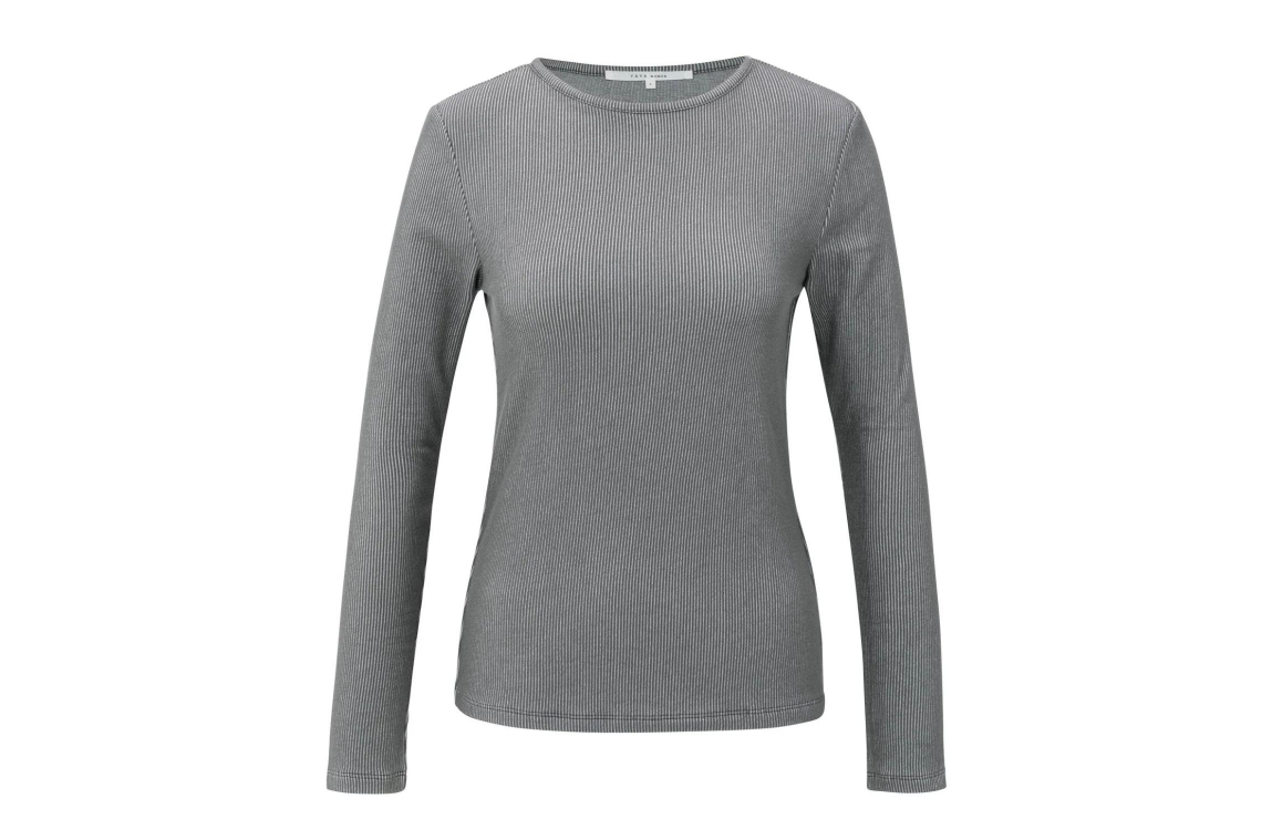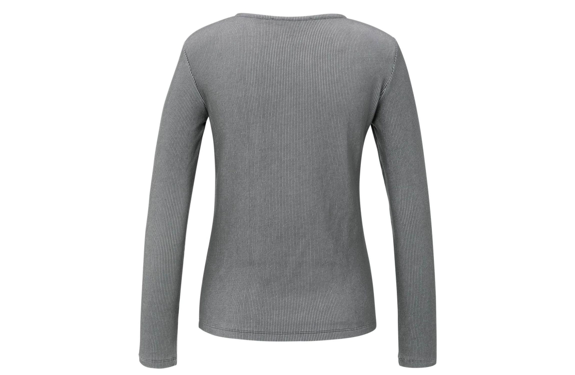 Yaya Ribbed long sleeve top 803071 Darknight grey dessin. Dit rechtvallende model is voorzien van een ronde hals en heeft lange mouwen met subtiele schoudervullingen. Deze grijze top van Yaya is vervaardigd uit een zachte ribstof met stretch.