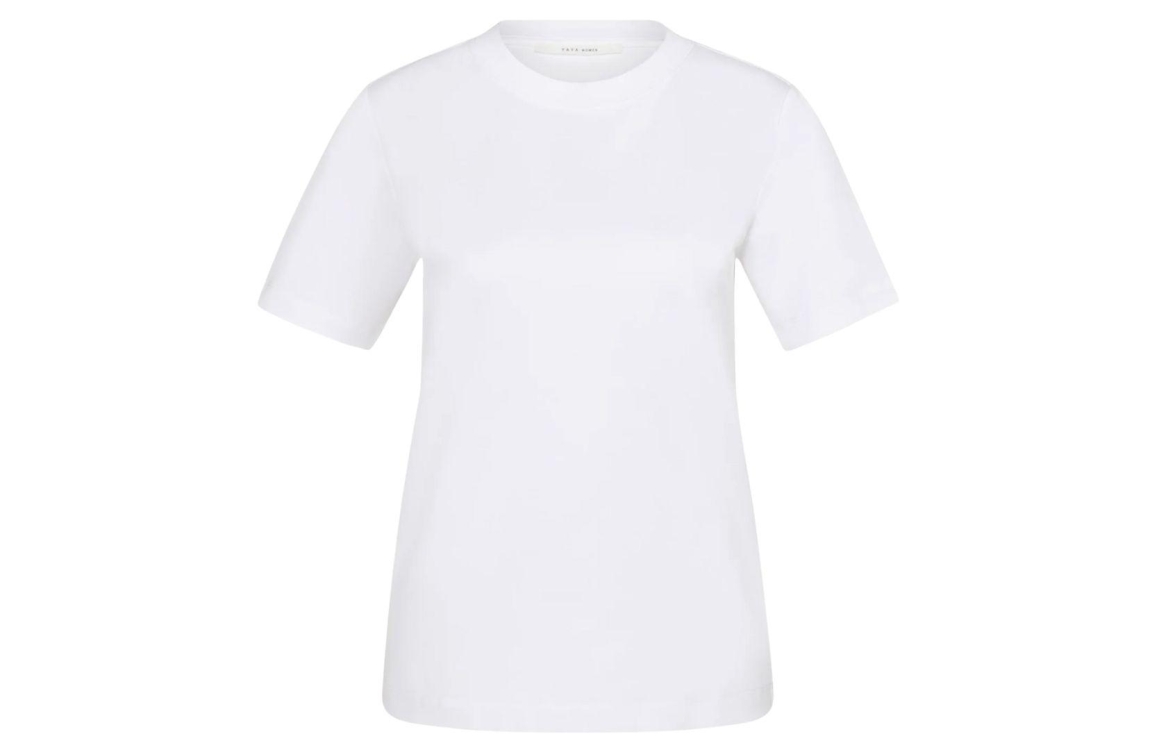 Yaya T-shirt 01-719057-N. Dit rechtvallende model heeft een ronde halslijn en korte mouwen. Deze witte T-shirt van Yaya is gemaakt van comfortabele katoen en is makkelijk te combineren.