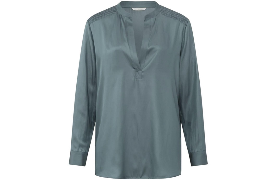 Yaya Satin v-neck top w. smock Stormy Wheather BlueYaya Satin v-neck top w. smock Stormy Wheather BlueYaya Satin v-neck top w. smock Stormy Wheather Blue