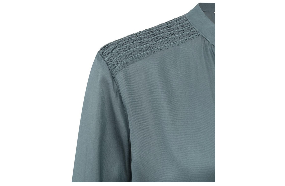 Yaya top 01-701138-310 Dit soepelvallende model heeft een ronde hals met v-inkeping. Deze blauwe top van Yaya heeft lange mouwen die afgewerkt is met een manchet en heeft gesmockte details op de schouder.