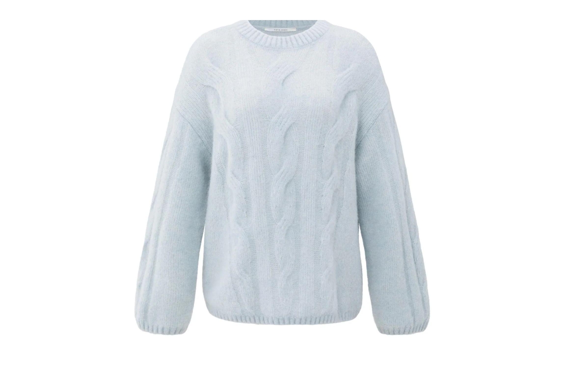 Yaya Soft cable knit sweater 44309 Secret spaces grey. Dit rechtvallende model is voorzien van een ronde hals en heeft lange mouwen. Deze grijs/blauwe Yaya sweater is bewerkt met een kabelpatroon aan zowel de voor- als achterzijde. Dit model is afgewerkt met ribgebreide boorden.
