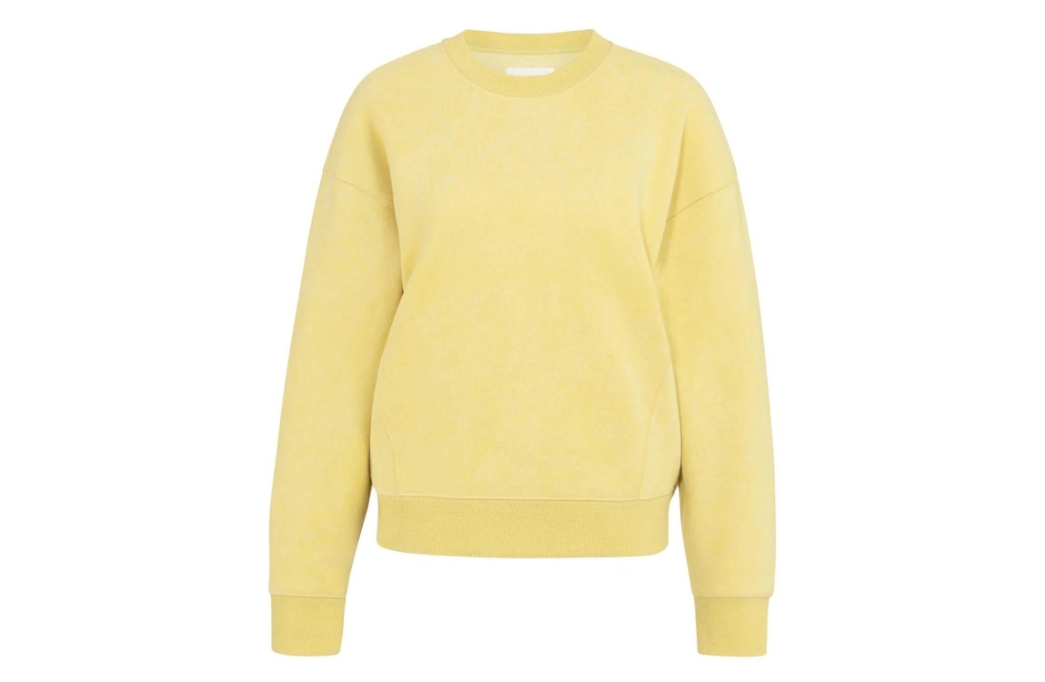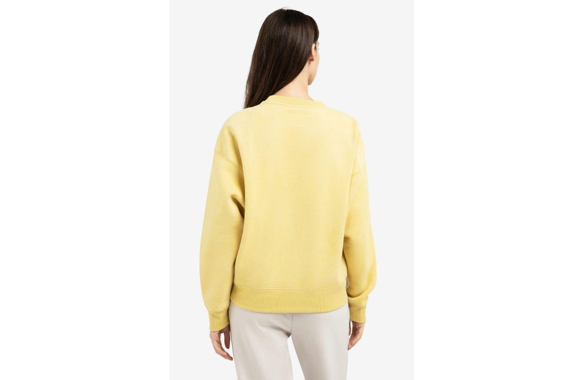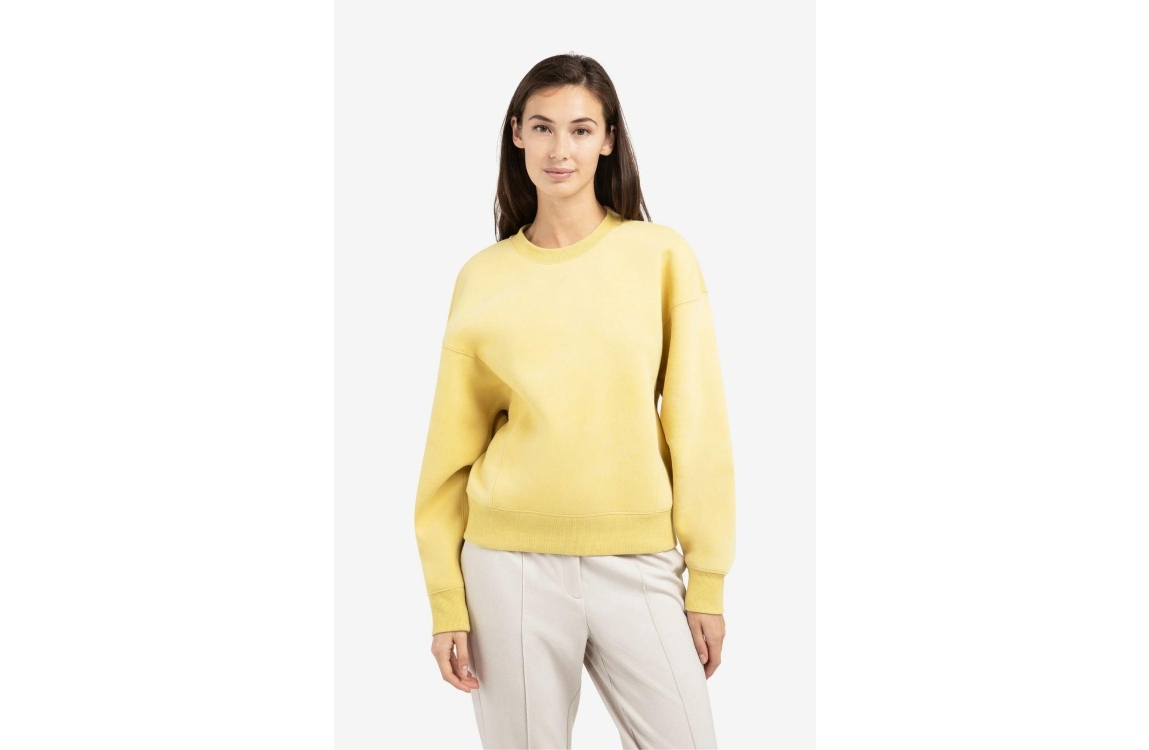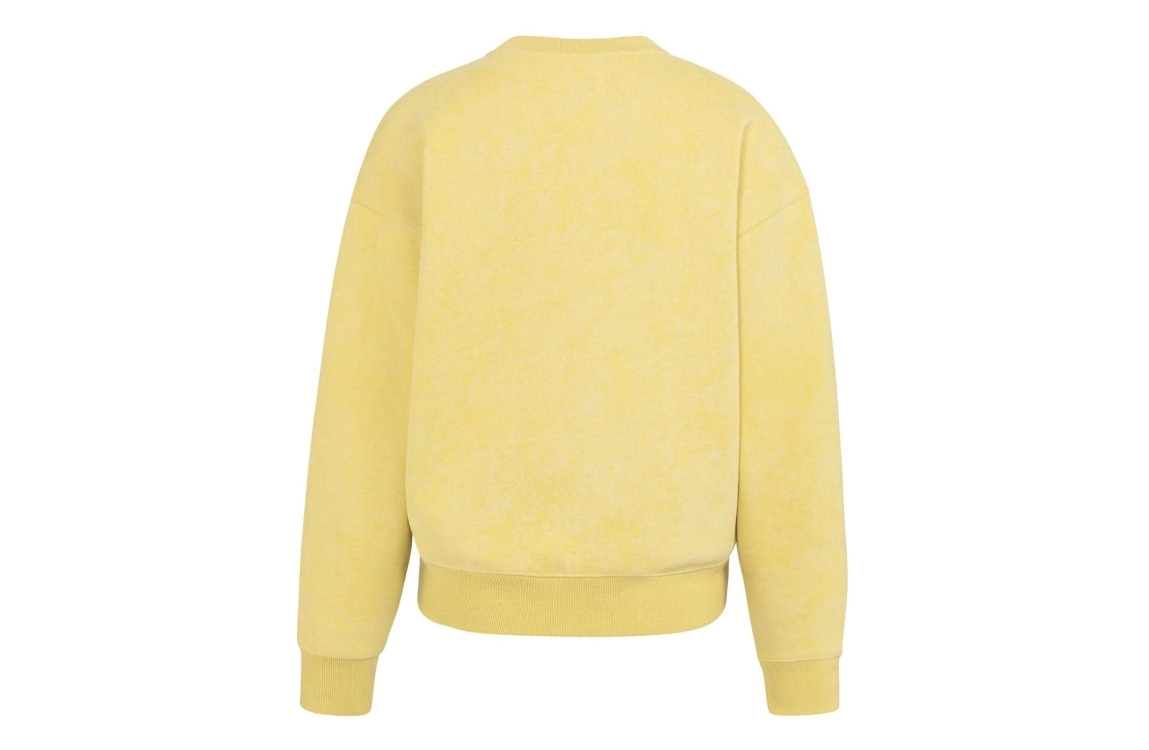 Yaya Sweater van stevige stof 40626 Dried moss green. Dit wijdvallende model heeft een ronde halslijn en lange mouwen. Deze mos groene sweater van Yaya heeft een gewassen effect in de stof en is afgewerkt met geribde boorden aan de hals, zoom en mouwen. Dit model is op de voorzijde bewerkt met zichtbare naaddetails. Het model is 175 cm en draagt maat S.
