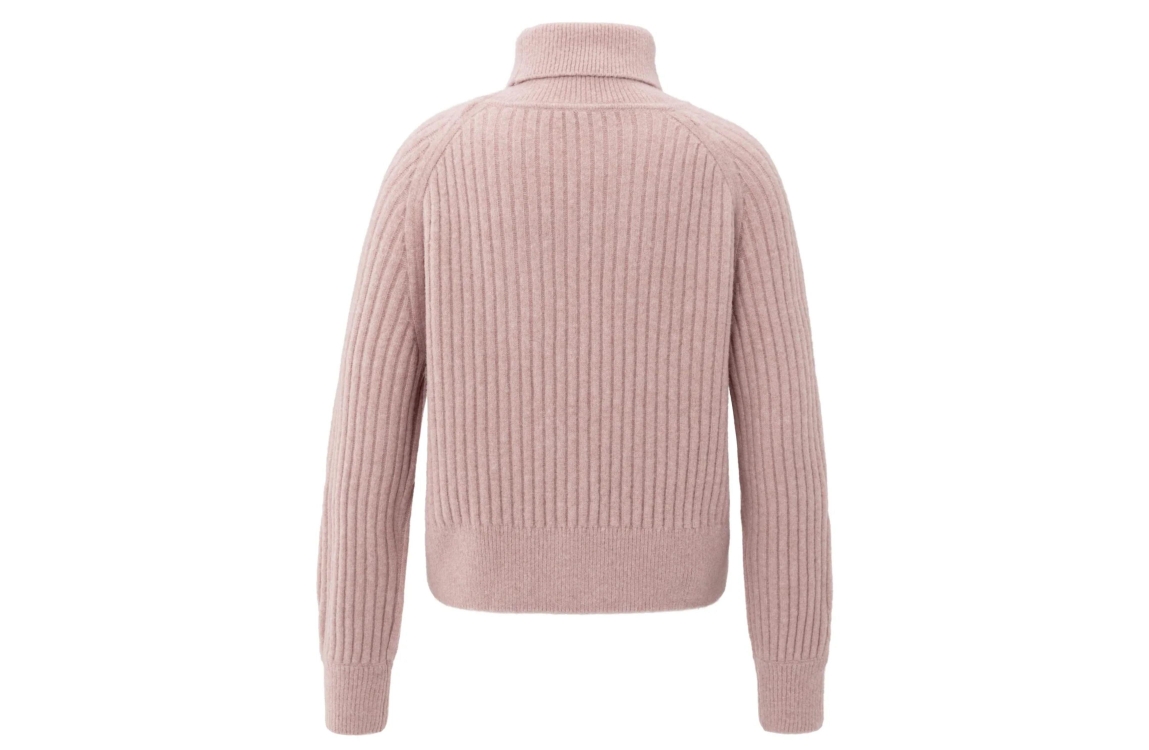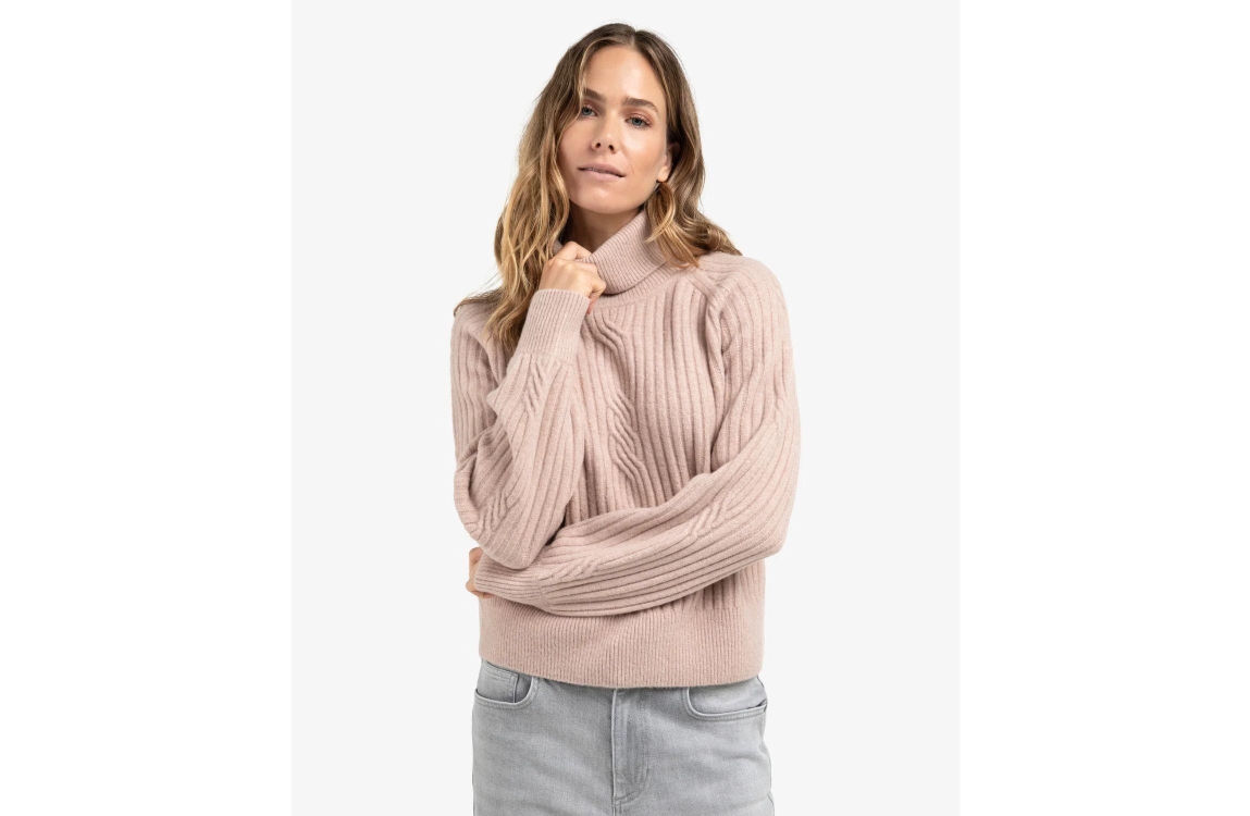 Yaya Sweater with cable detail 615092 Shadow gray pink mel. Dit rechtvallende model is voorzien van een col en heeft lange mouwen. Deze roze sweater van Yaya is voorzien van een rijke ribstructuur en een subtiel kabeldetail middenvoor. Dit model is afgewerkt met ribgebreide boorden.