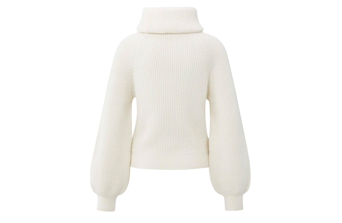 Yaya trui 01-000508-510. Dit rechtvallende model heeft een omgeslagen col en lange mouwen. Deze witte trui van Yaya is uitgevoerd in een ribgebreide kwaliteit en heeft afgewerkte boorden.