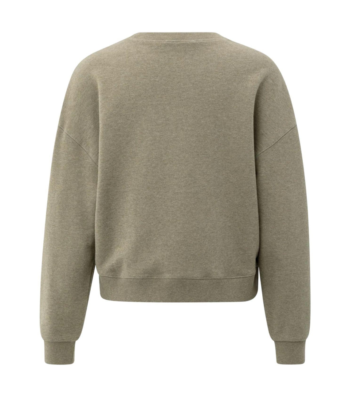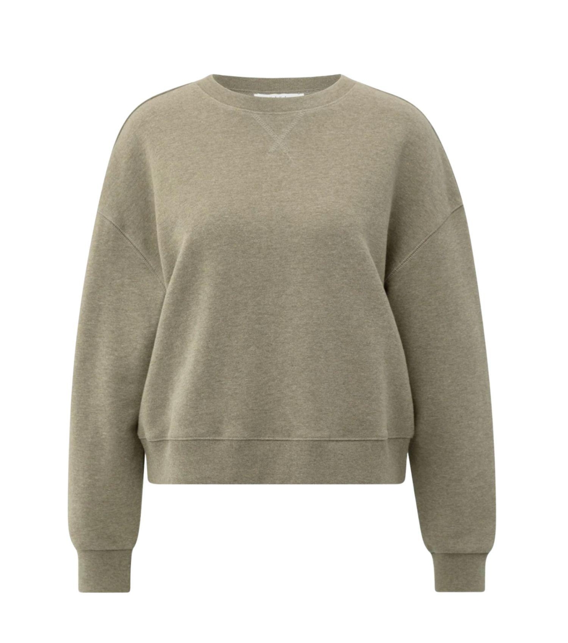 Yaya sweater 01-109096-509. Dit wijdvallende model heeft een ronde halslijn en lange mouwen. Deze groene sweater van Yaya is gedetailleerd met verlaagde schoudernaden en is afgewerkt met geribde boorden aan de hals, zoom en mouwen.