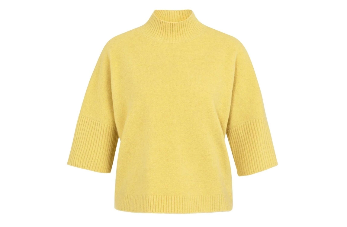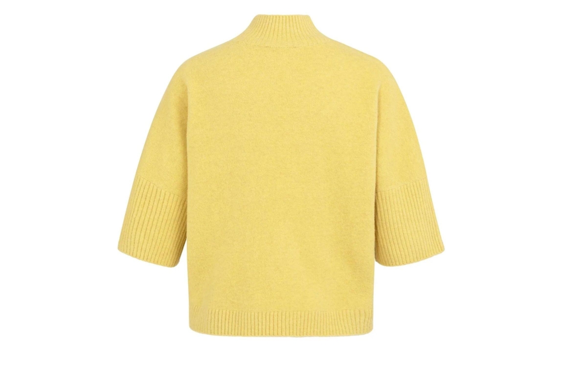 Yaya Trui met geribde driekwart mou 406262 Dried moss green mel. Dit wijdvallende model is voorzien van een geribde opstaande hals en heeft driekwart mouwen. Deze mos groene trui is afgewerkt met brede ribboorden. Dit model is voorzien van een grof ribpatroon. Het model is 178 cm en draagt maat S.