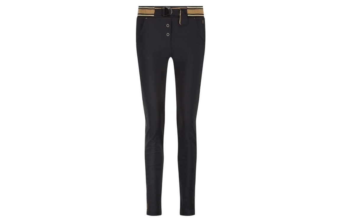 ZIP73 Pants board buckle W25/111/01/001. Het aangesloten model sluit door middel van knopen en een ceintuur. Deze zwarte broek van Zip73 is bewerkt met bronzen accenten en beschikt over steekzakken op het achterpand.