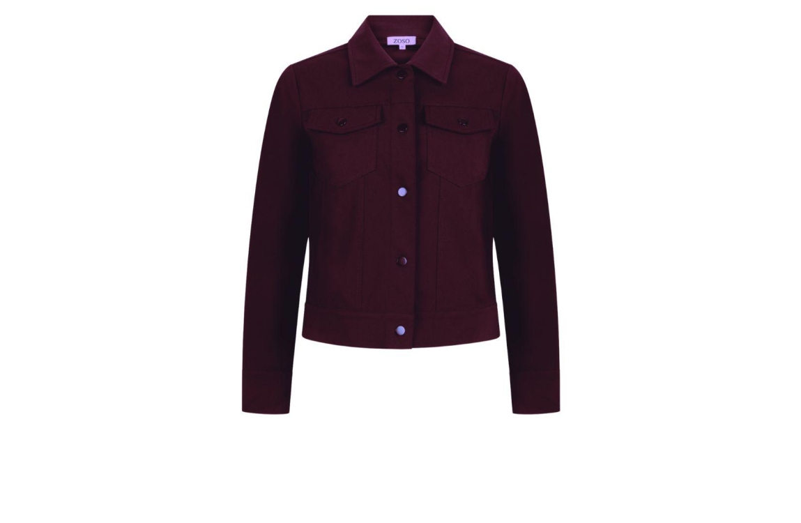 Zoso jasje Anouk. Dit rechtvallend model is voorzien van een kraag en heeft lange mouwen. Deze bordeauxkleurige jasje van Zoso sluit door middel van knopen en beschikt over twee borstzakken.