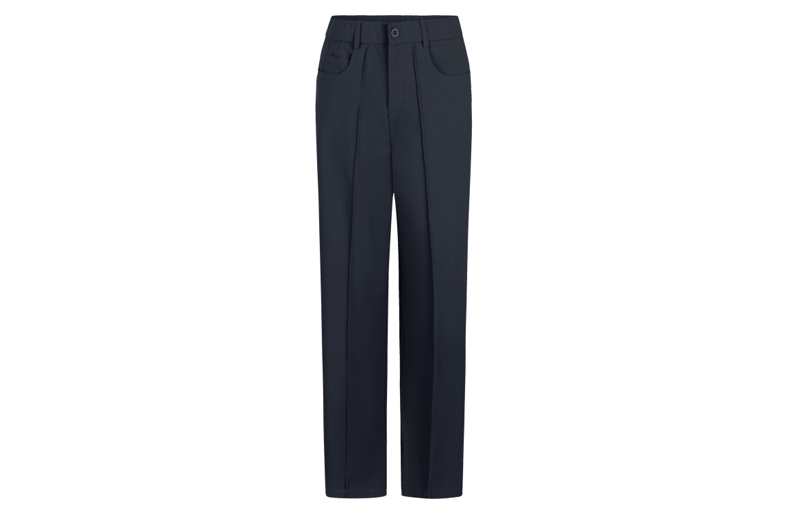 Zoso broek Beau. Dit wide leg model sluit door middel van een knoop en rits afgewerkt met ceintuurlussen. Deze donkerblauwe broek van Zoso is uitgevoerd in een 5-pocket model.
