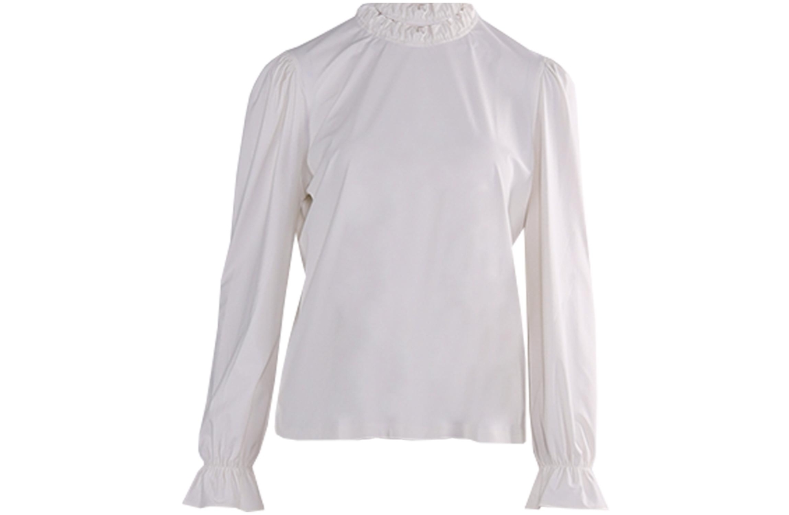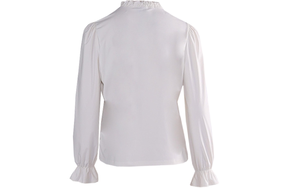 Zoso shirt Jeyda. Dit rechtvallend model is voorzien van een ronde hals en heeft lange mouwen. Dit witte shirt van Zoso is afgewerkt met ruches bij de hals en mouwen.