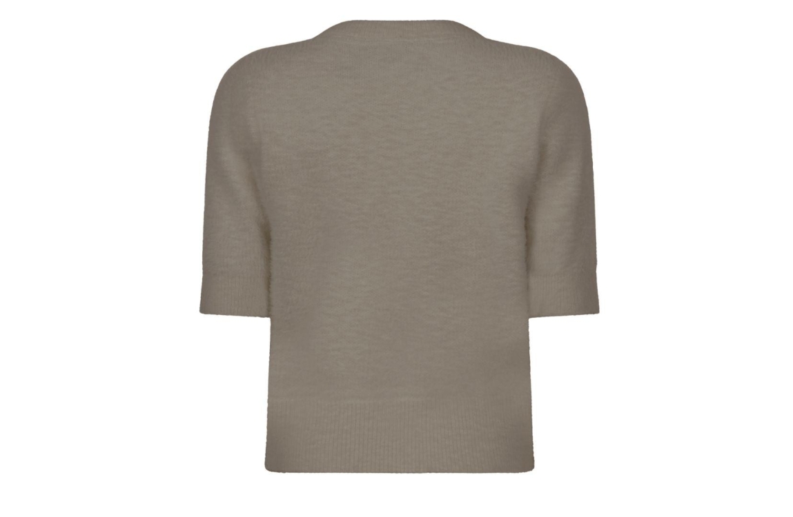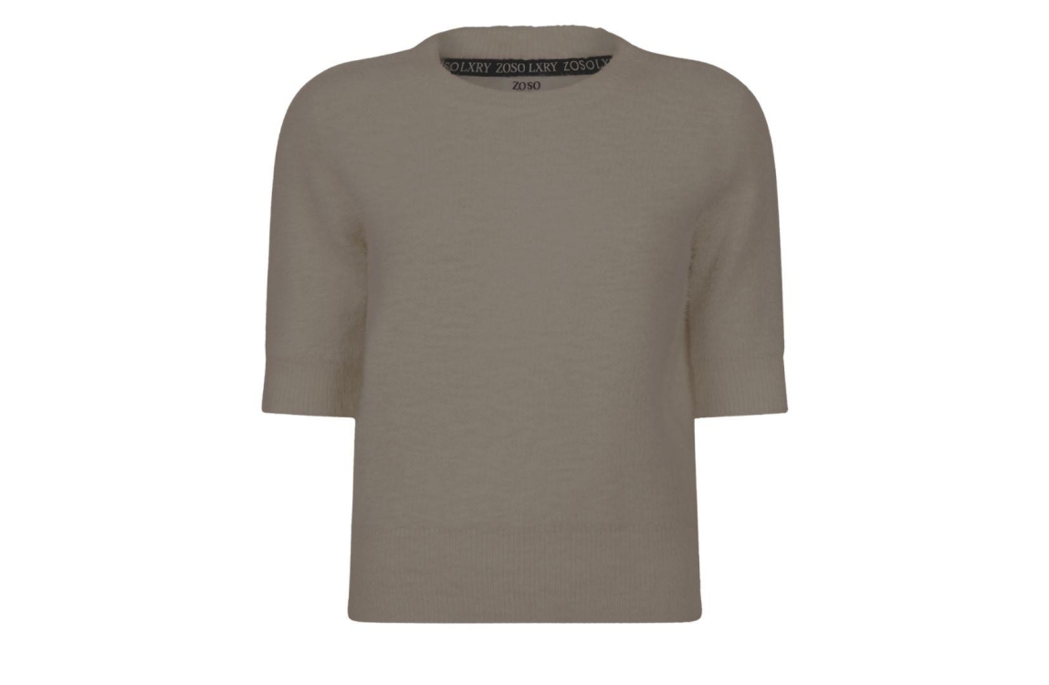 Zoso pullover Patrice. Dit rechtvallend model is voorzien van een ronde hals en heeft korte mouwen. Deze bruine fluffy pullover van Zoso is bewerkt met glitter.