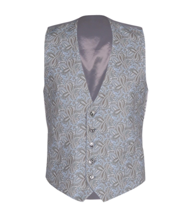 Zuitable gilet DiWesley. Dit slim fit model heeft geen mouwen en sluit doormiddel van knopen. Dit blauwe gilet van Zuitable is op 2 manieren te dragen, met een stippen patroon en een bloemen patroon. Verder beschikt dit gilet over 2 steekzakjes.