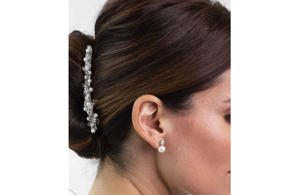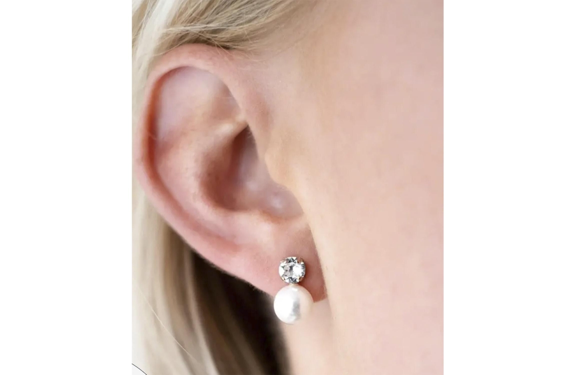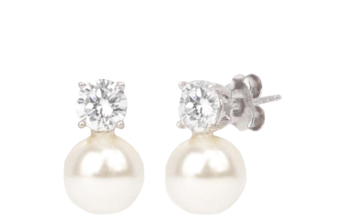 Abrazi Alicia oorbellen O5-SKT-8. Deze oorbellen zijn bewerkt met een parel en een kristal uitgevoerd in een rhodium plating.