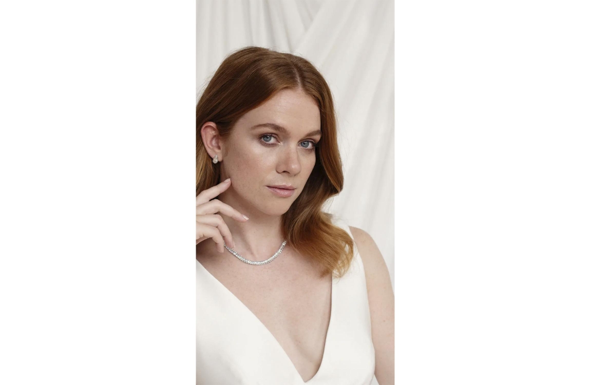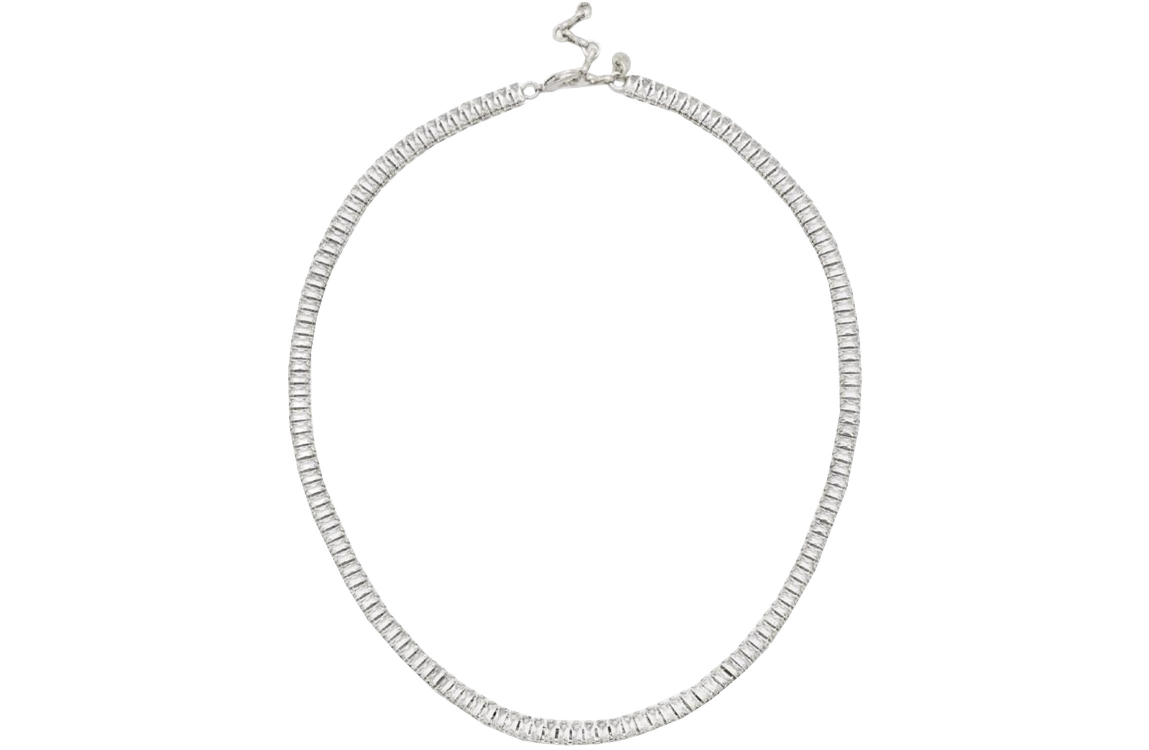 Abrazi baguette ketting KC-BQ. Deze ketting is bewerkt met baguette geslepen kristallen en uitgevoerd in een rhodium plating. De ketting is 42cm lang.