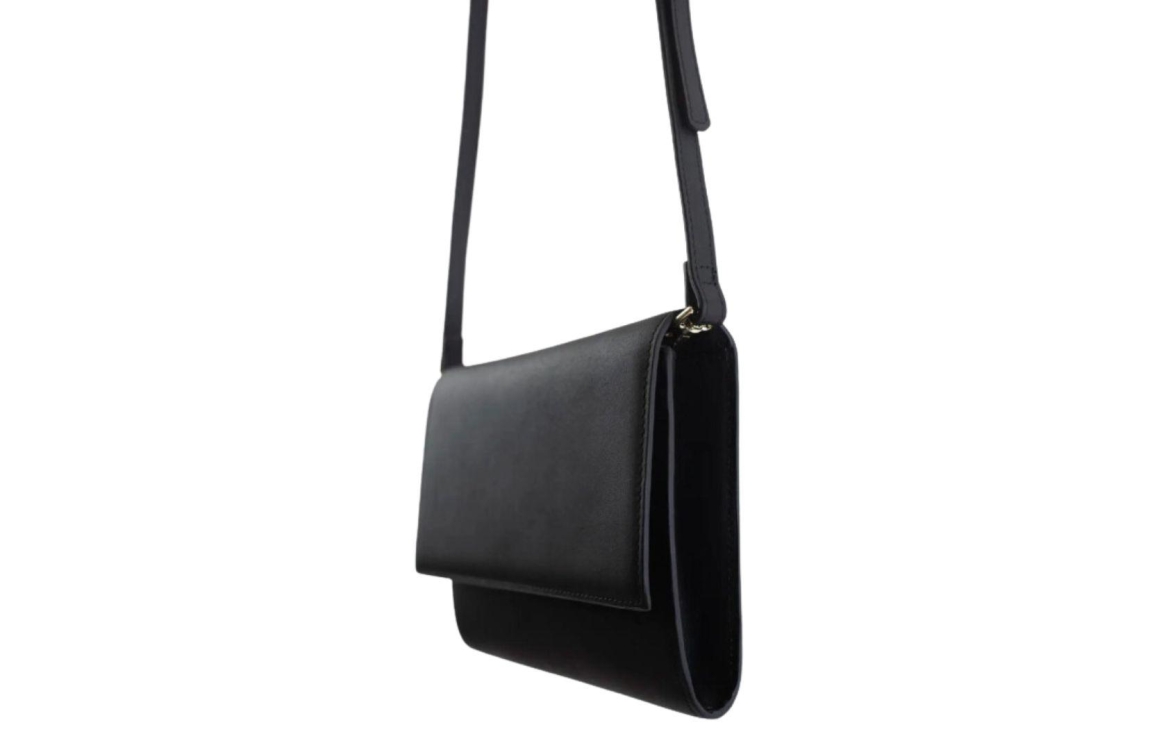 Abrazi Jackie clutch. Deze zwarte clutch van Abrazi beschikt over een afneembare verstelbare band. Deze clutch is ook voorzien van een spiegel, een binnenzak met rits en een pasjeshouder aan de binnenzijde.
