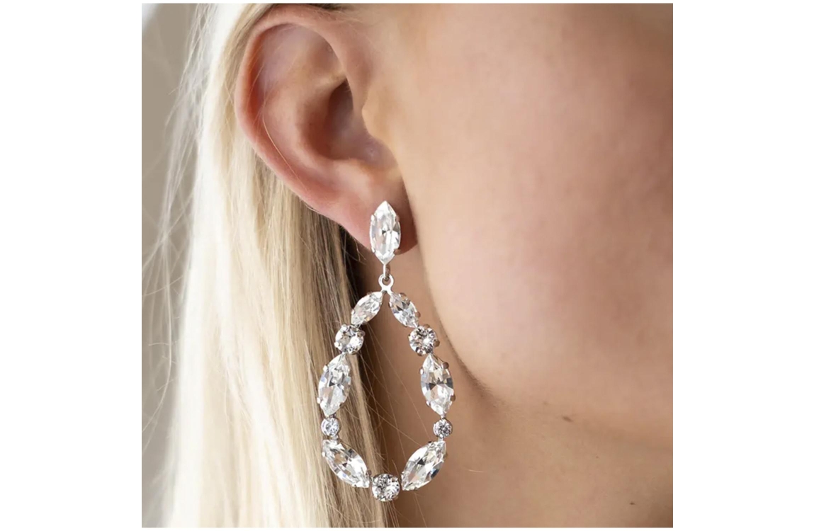 Abrazi Janey oorbellen O6-NV-S. Deze oorhangers zijn bewerkt van een duurzame messing en Swarovski-kristallen. De oorbellen zijn handgemaakt en uitgevoerd in een hoogwaardige rhodium plating.
