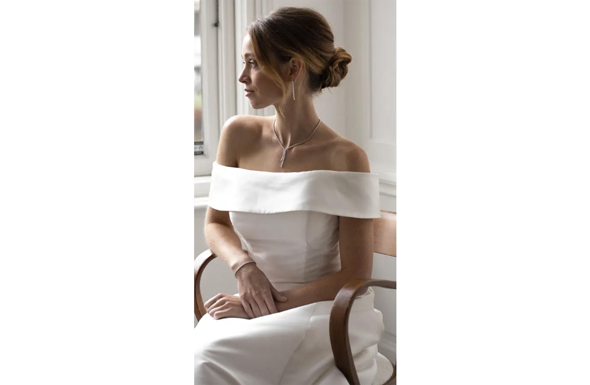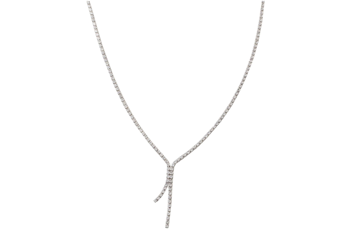 Abrazi ketting Jet KC-DC. Deze verfijnde ketting is bewerkt met een enkele rij kristallen en is uitgevoerd in een rhodium plating. De ketting is 46 cm lang.
