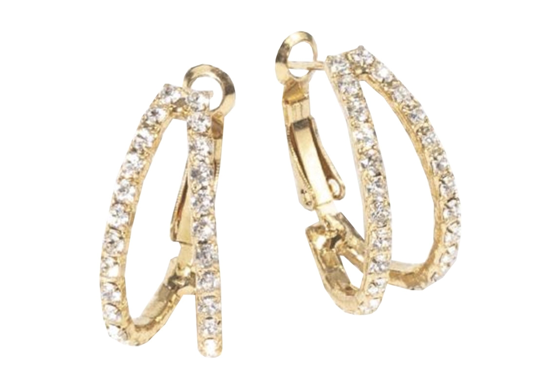 Abrazi Marilyn oorbellen O6-C2. Deze oorbellen zijn twee bevestigde ringen van messing bewerkt met Swarovski-kristallen uitgevoerd in een gouden plating.