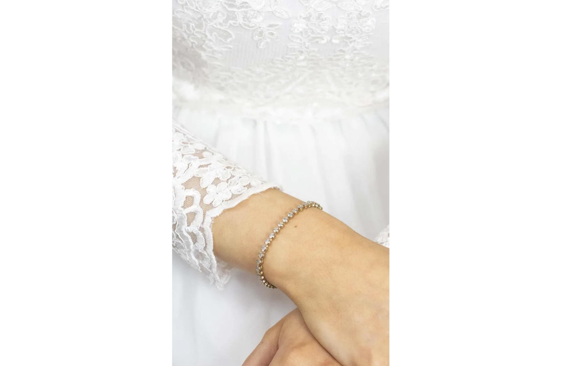 Abrazi regal armband AC-PP24-RL. Deze gouden armband is bewerkt met kleine kristallen en beschikt over een verstelbare sluiting van 15,5 cm tot 18 cm.