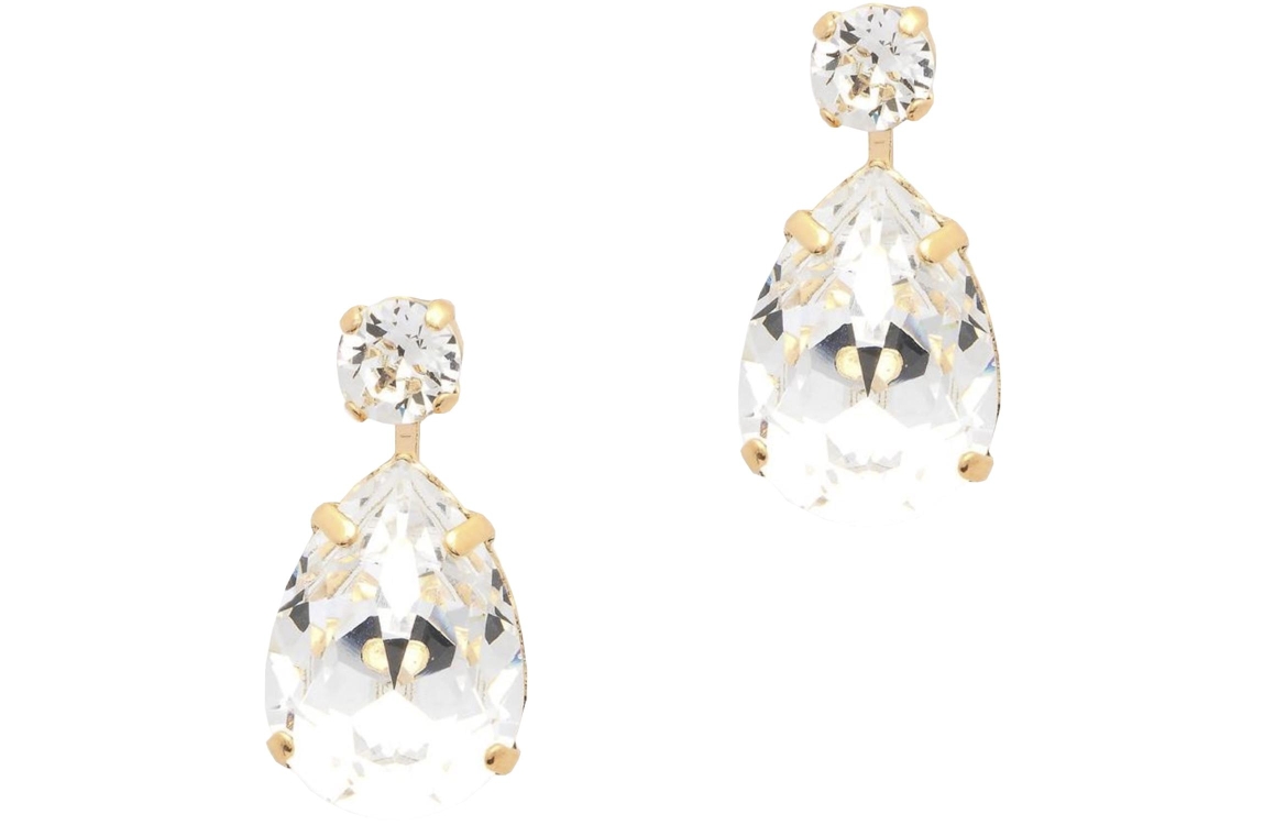 Abrazi Sophia oorbellen O6-OVL-SKT. Deze gouden oorbellen zijn bewerkt met peervormige Swarovski-kristallen in een hoogwaardige setting.