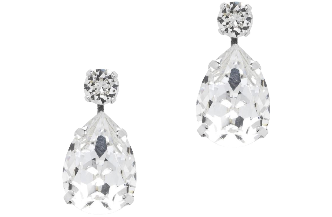 Abrazi Sophia oorbellen O6-OVL-SKT-215. Deze rhodium plating oorbellen zijn bewerkt met peervormige Swarovski-kristallen in een hoogwaardige setting.
