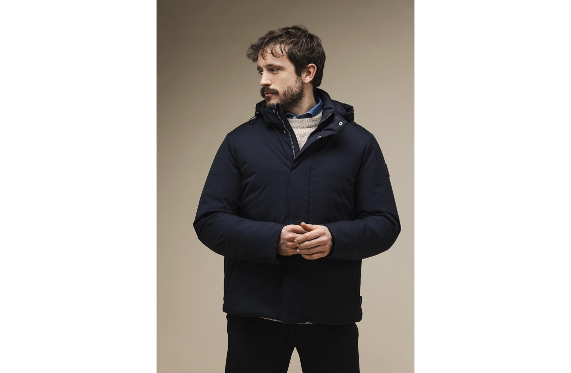 Agiato Rico Navy AT001-51001 winterjas. Het rechtvallend model heeft een capuchon, lange mouwen en sluit door middel van een rits. Deze navy kleurige winterjas van Agiato is voorzien van verschillende jaszakken en warm gevoerd.
