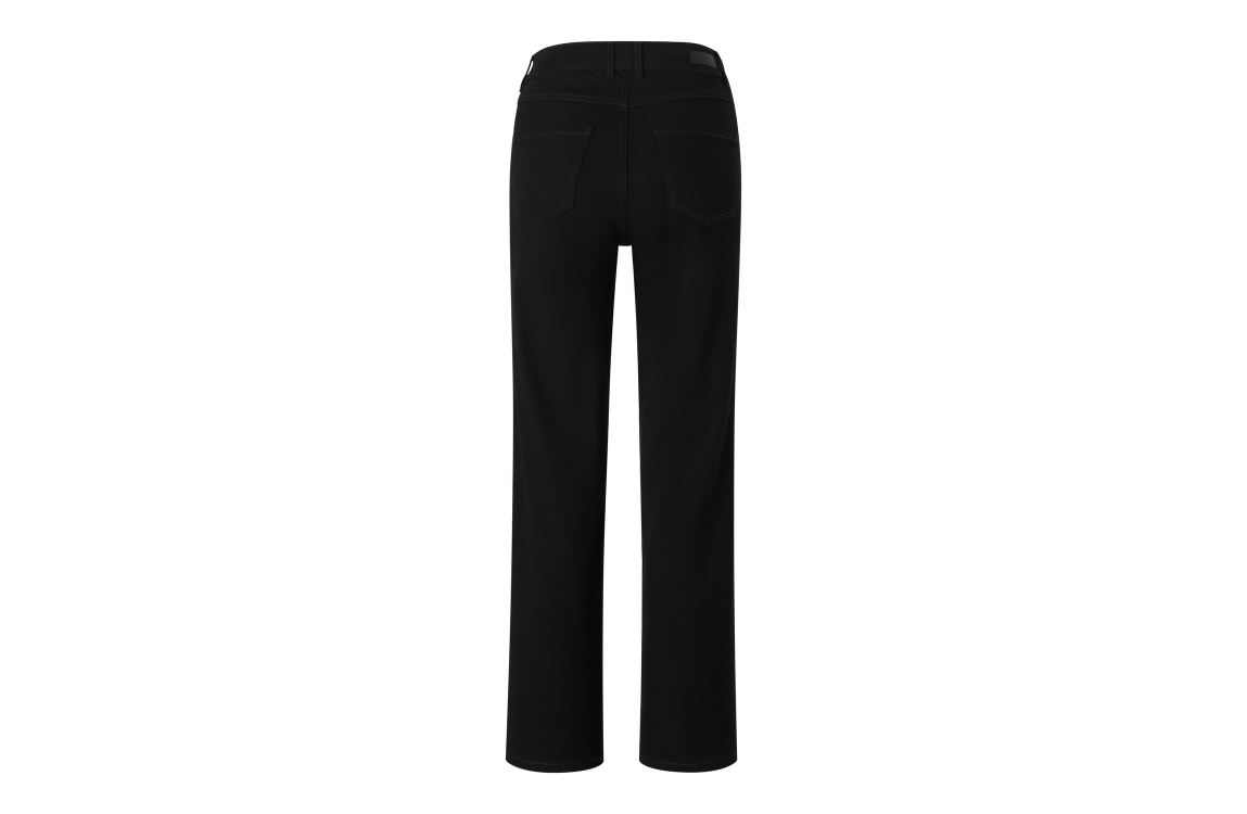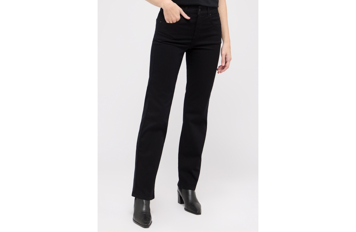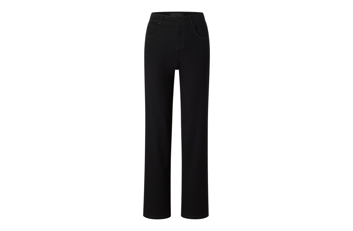 Angels Lara jeans 5192900. Dit wide leg model sluit door middel van een knoop en rits afgewerkt met ceintuurlussen. Deze zwarte jeans van Angels is uitgevoerd in een 5-pocket model.