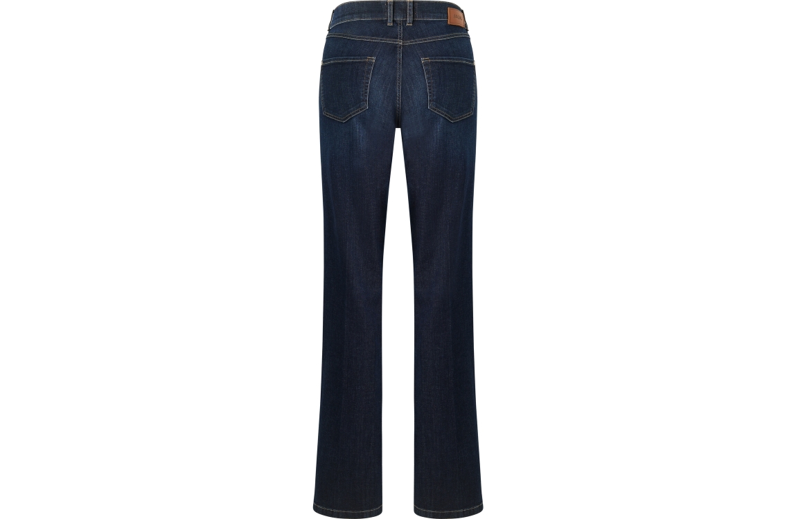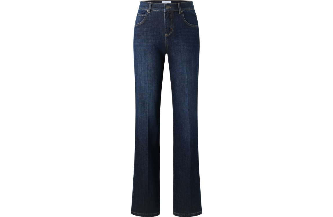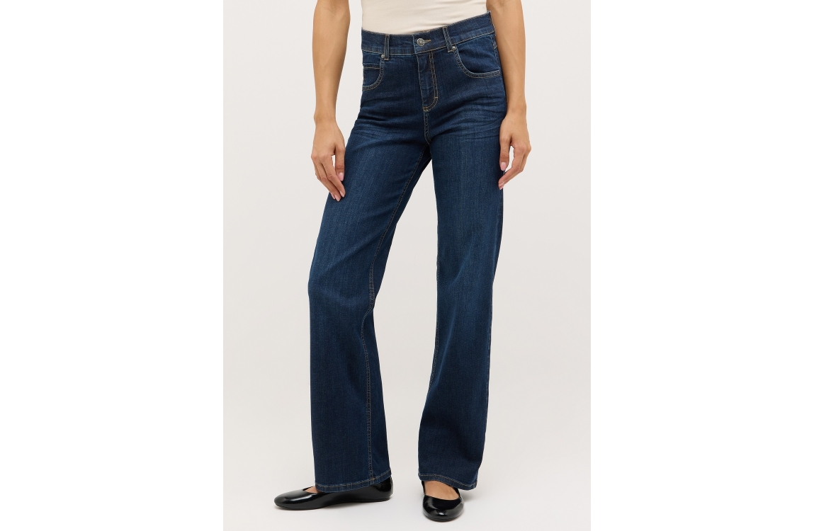 Angels Lara jeans 3462900. Dit wide leg model sluit door middel van een knoop en rits afgewerkt met ceintuurlussen. Deze donkere jeans van Angels is uitgevoerd in een 5-pocket model.