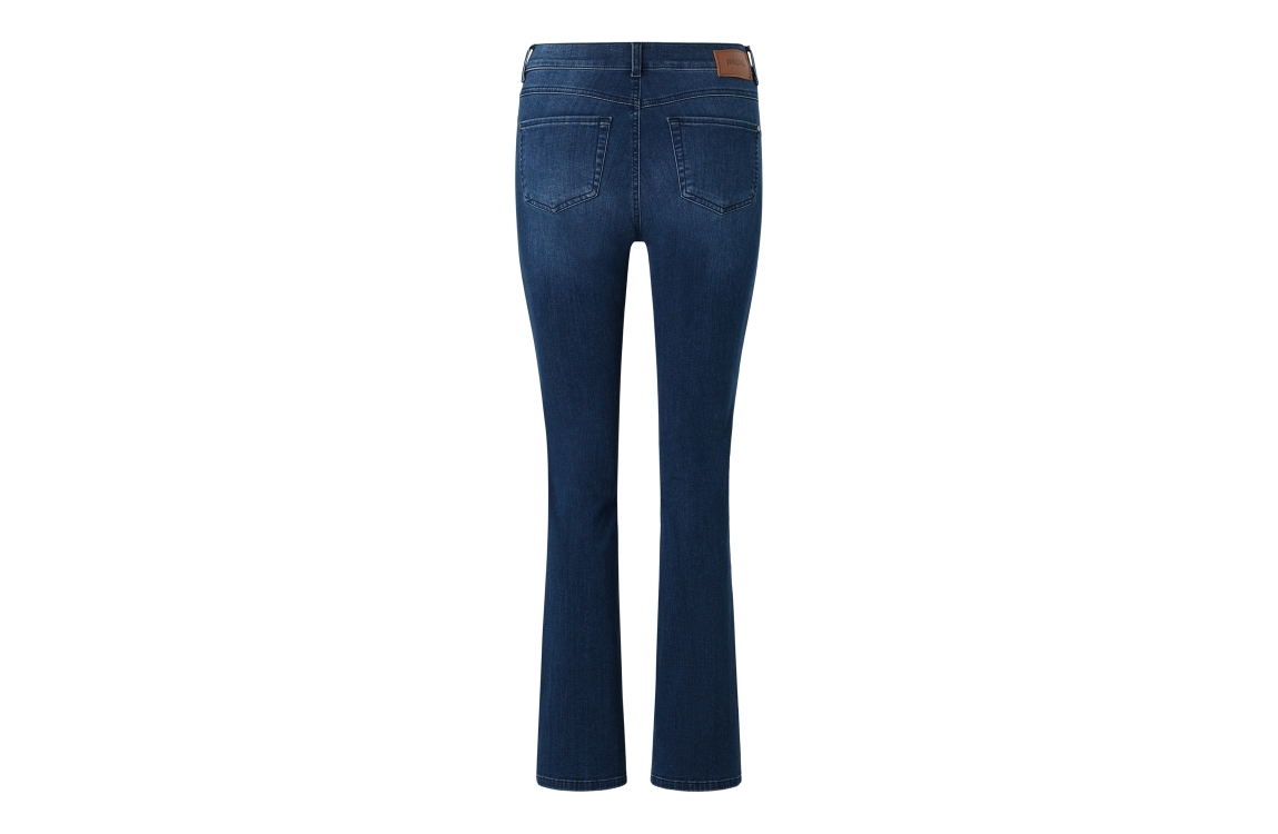 Angels Leni jeans 3468900. Dit bootcut model sluit door middel van een knoop en rits afgewerkt met ceintuurlussen. Deze donkere jeans van Angels is uitgevoerd in een 5-pocket model.