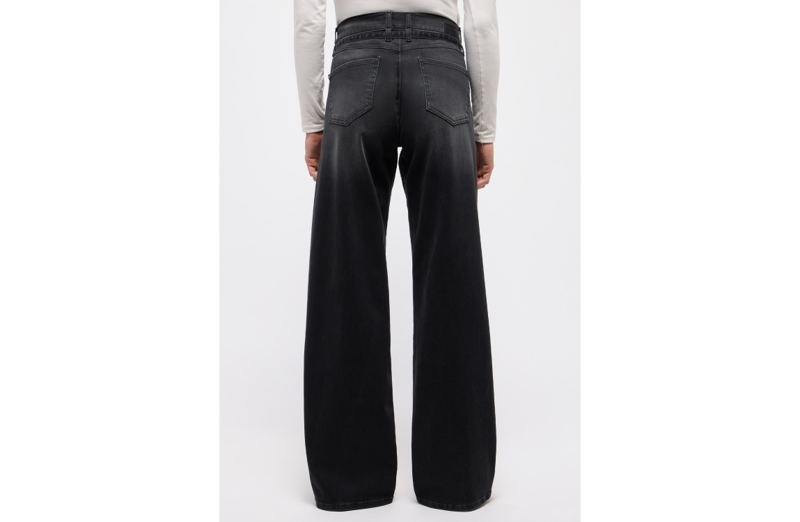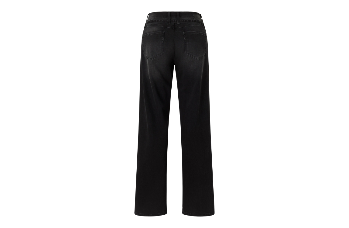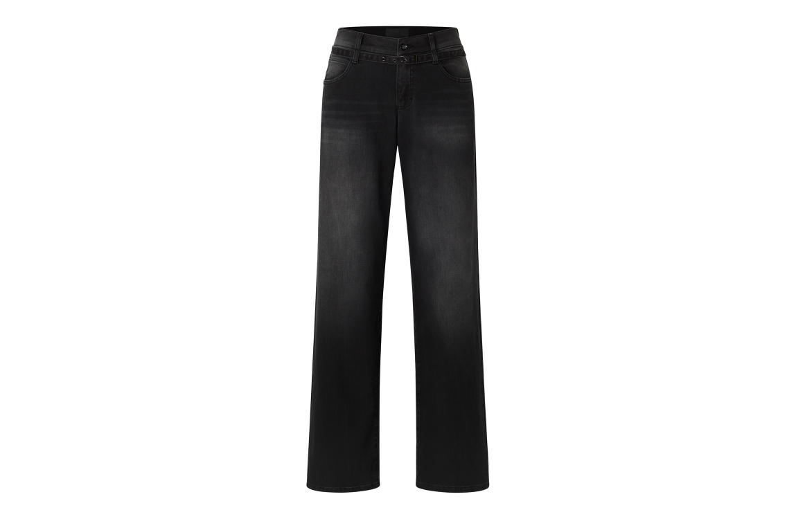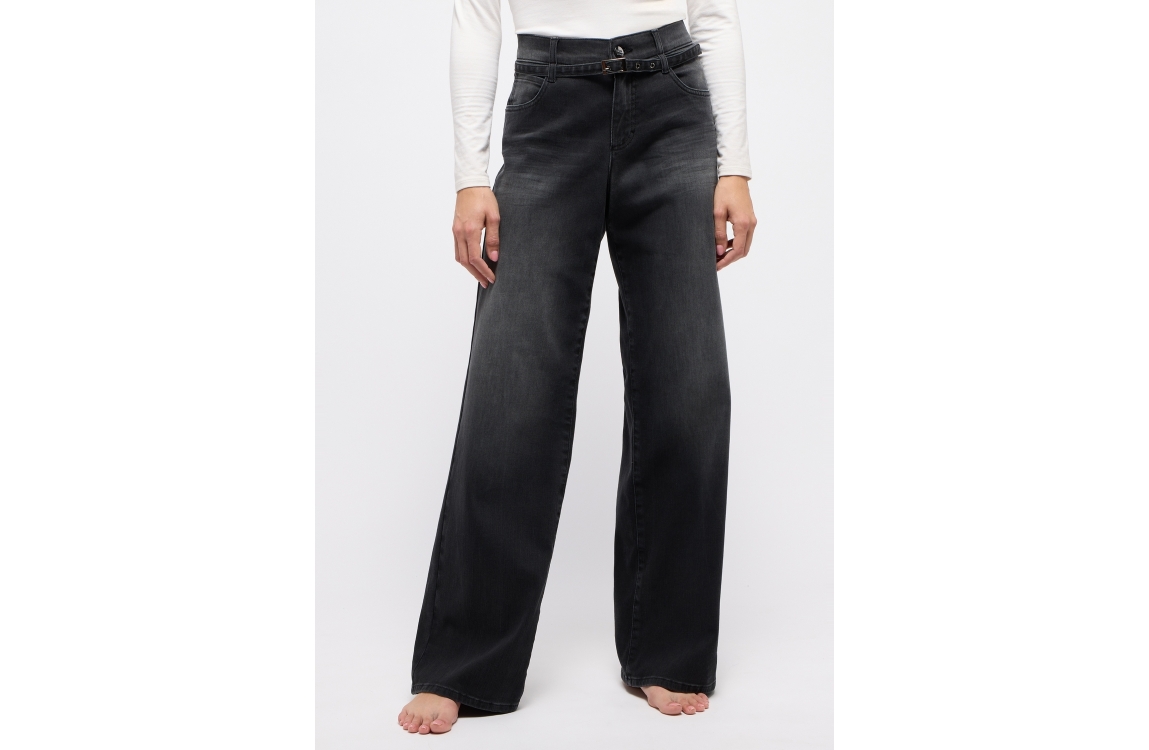 Angels jeans Liz belt 3502565. Dit wide leg model sluit door middel van een knoop, rits en een afneembaar ceintuur met gesp. Deze antrachiet kleurige jeans van Angels is uitgevoerd in een 5-pocket model.