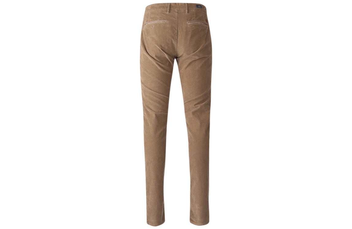 Atelier Noterman broek ATN05-A78-1585-726. Dit rechtvallende model sluit door middel van een knoop en rits. Deze donker beige broek van Atelier Noterman is voorzien van 5-pocket zakken, riemlusjes en uitgevoerd in een corduroy materiaal.