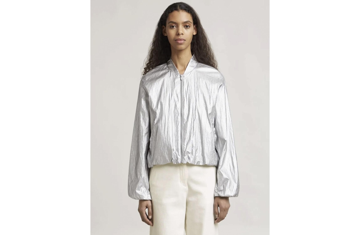 Beaumont zomerjas BC089-10-241. Dit wijdvallende model is voorzien van een v-halslijn en heeft lange mouwen. Deze zilveren jas van Beaumont sluit door middel van een rits en heeft lange mouwen. Dit model is voorzien van twee schuine steekzakken aan de voorzijde en is bij de mouw voorzien van een elastische band.