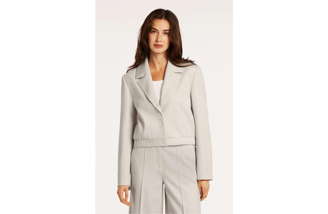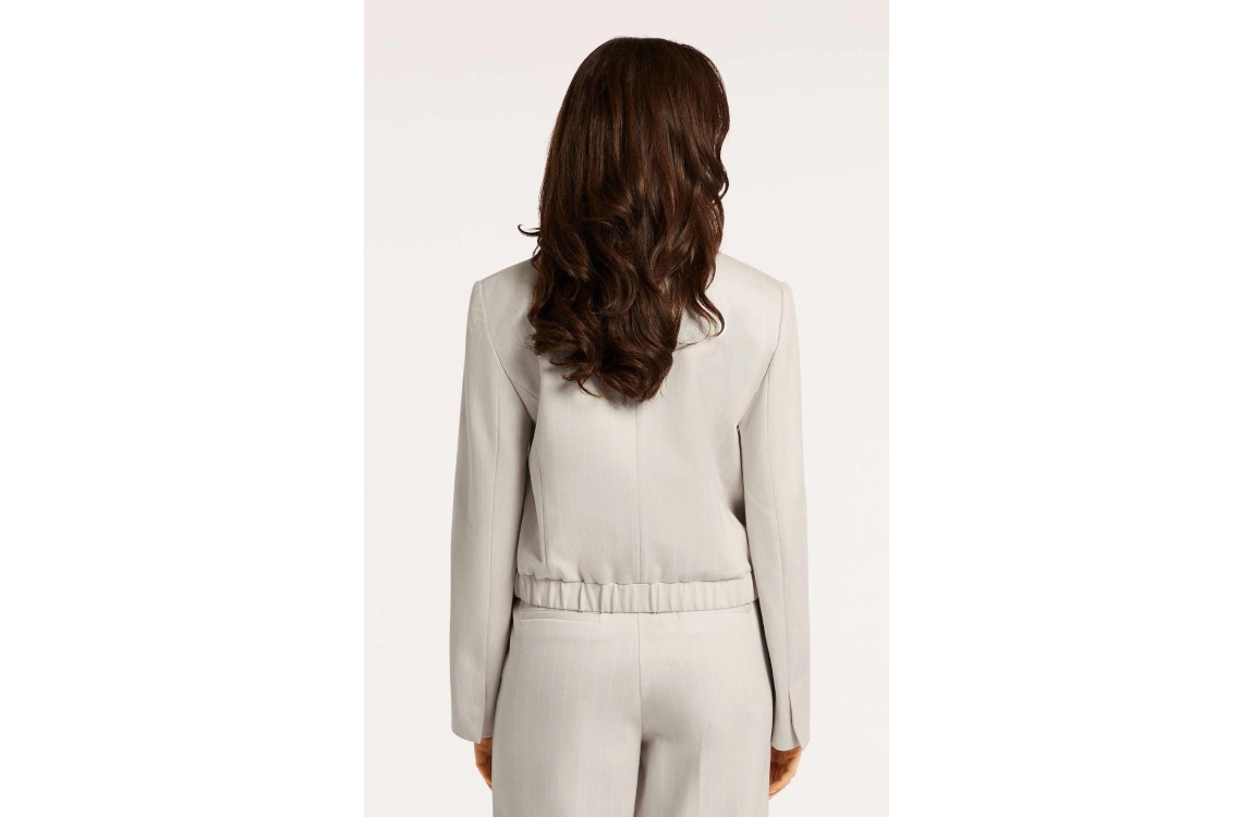 Beaumont blazer Dagmar BC55115261 1170. Dit bomber model heeft een reverskraag en lange mouwen. Deze beige/off white blazer van Beaumont sluit aan de voorzijde door middel van blinde drukknopen en is voorzien van een decoratieve borstzak. Het model is all-over bewerkt met een streepprint en heeft een elastische zoom.
