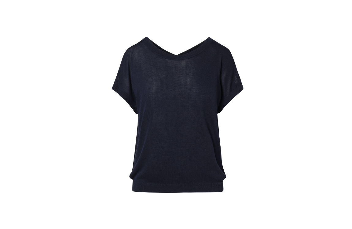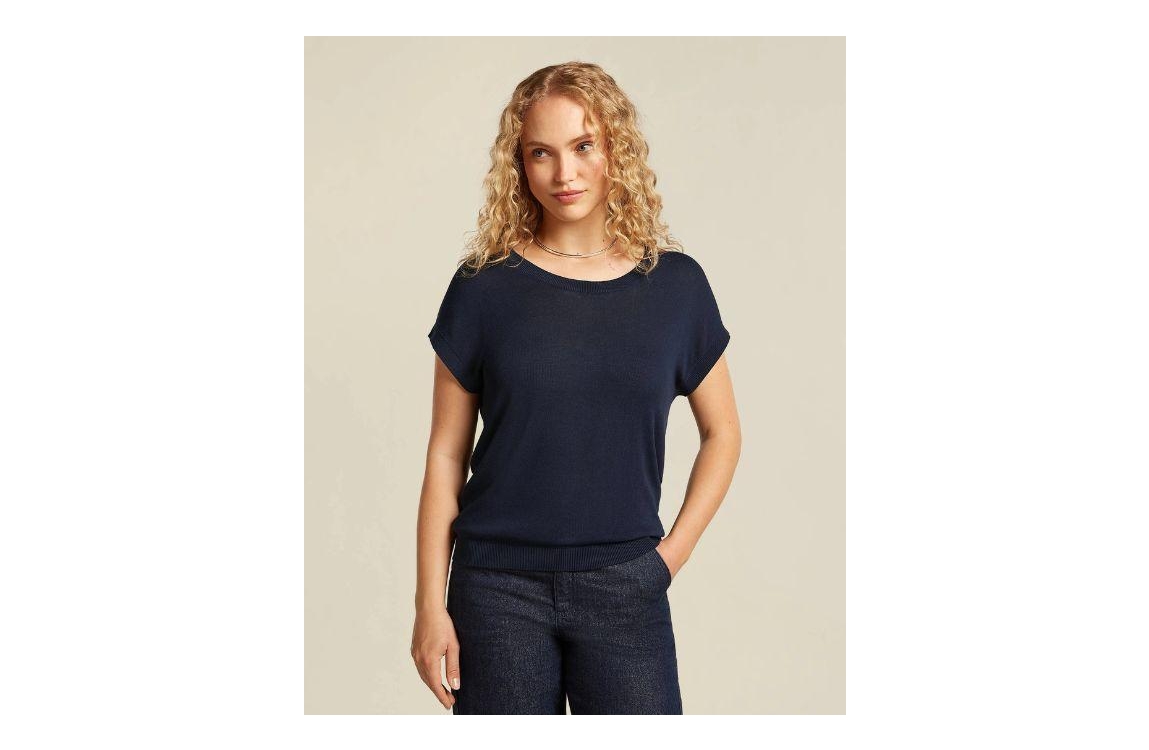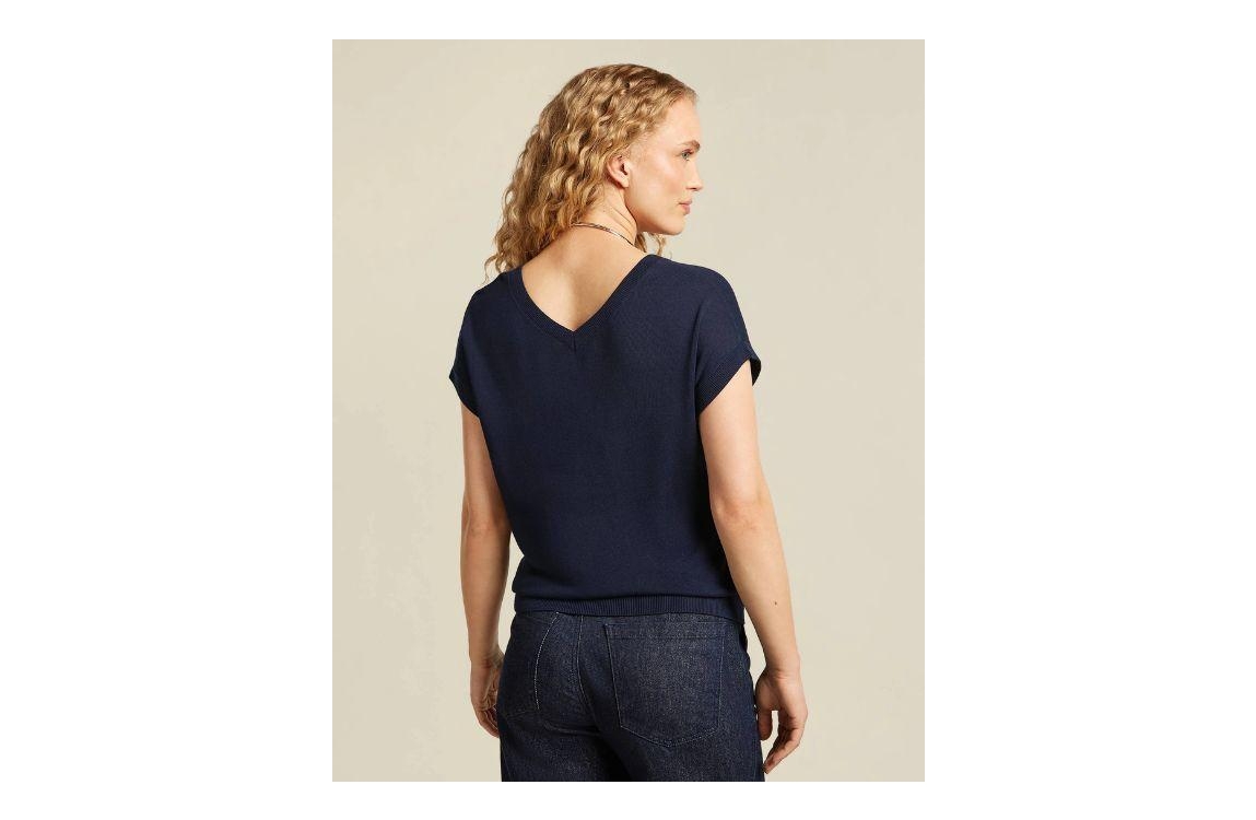 Beaumont DION Pullover 5980 night blue. Dit rechtvallende model heeft een mooie halslijn en korte mouwen. Deze donker blauwe pullover van Beaumont is aan beide kanten te dragen.