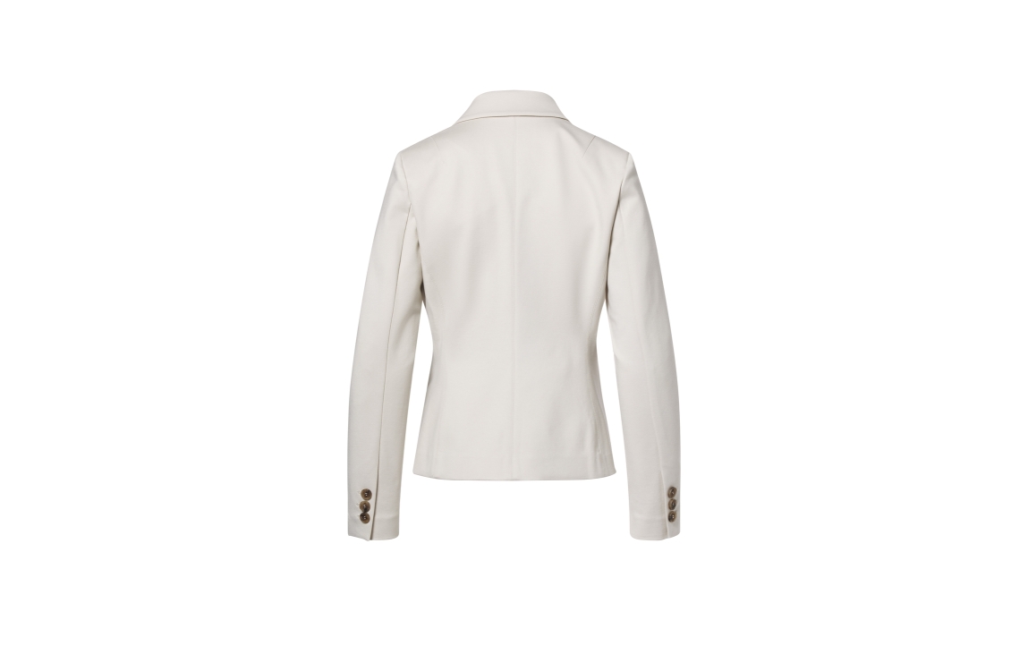 Beaumont PETIT blazer BC55110261. Dit rechtvallend model is voorzien van een reverskraag en heeft lange mouwen. Deze kitkleurige blazer van Beaumont sluit door middel van een knoop en beschikt over twee paspelzakken.
