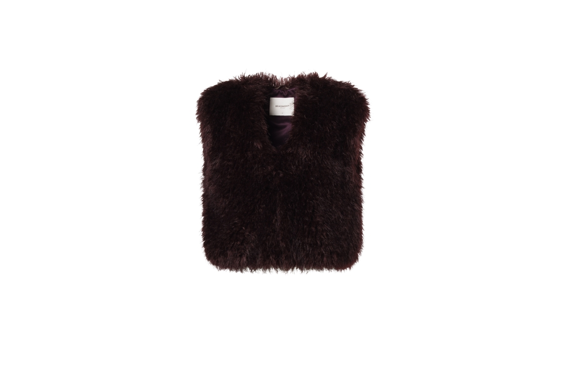 Beaumont gilet Sofie BC03180253. Dit rechtvallend model is mouwloos en sluit door middel van een aanschuifsluiting. Deze burgundy gilet van Beaumont is uitgevoerd in een faux fur kwaliteit.