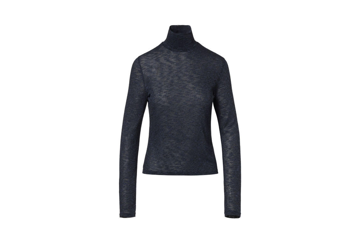 Beaumont SUSY Top 5980 night blue. Dit aangesloten model heeft lange mouwen en een col. Deze donkerblauwe top van Beaumont is bewerkt met een lurex. Dit model is 1,78 m en draagt maat 36.
