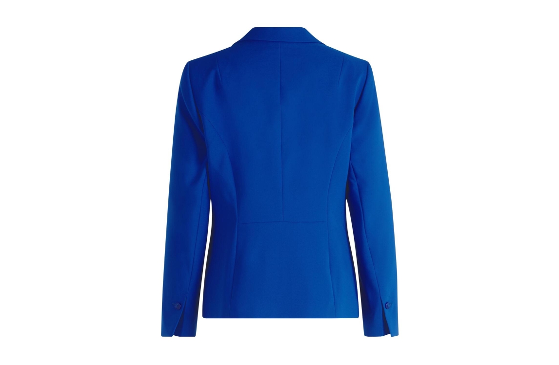 Betty Barclay blazer 4411/1080/8329. Dit rechtvallend model heeft een reverskraag en lange mouwen. Deze blauwe blazer van Betty Barclay sluit aan de voorzijde door middel van knopen en beschikt over twee klepzakken. De mouwen van dit model zijn gedetailleerd met een knoop.