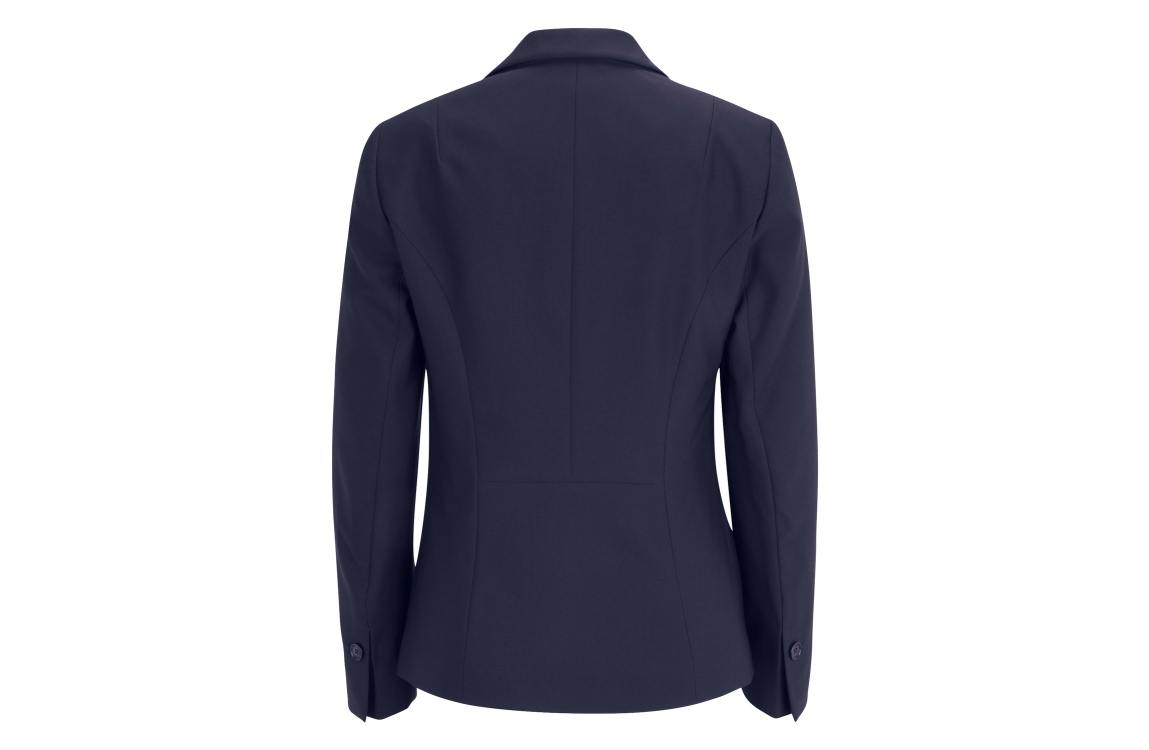 Betty Barclay blazer 42001080-8345. Dit rechtvallend model is voorzien van een reverskraag, lange mouwen en sluit door middel van knopen. Deze donkerblauwe blazer van Betty Barclay heeft paspelzakken met klepjes op de voorzijde.
