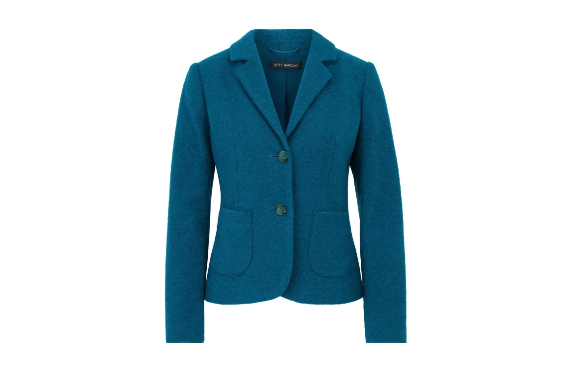 Betty Barclay blazer. Dit getailleerde model is voorzien van een kraag en heeft lange mouwen. Deze turquoise blazer van Betty Barclay sluit aan de voorzijde door middel van knopen en is voorzien van twee steekzakken.