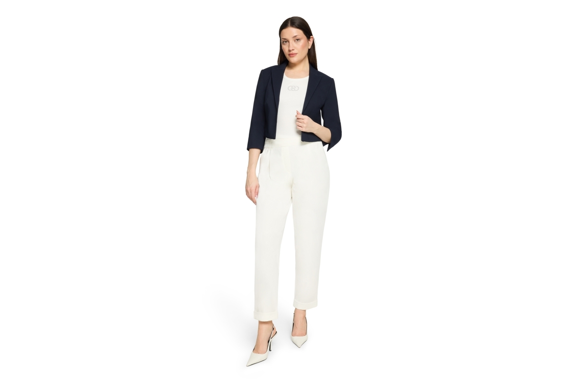 Betty Barclay broek 61611838 1014. Dit 7/8 model sluit door middel van een elastische boord. Deze off white broek van Betty Barclay is voorzien van twee steekzakken aan de voorzijde en is uitgevoerd in stretchkwaliteit.