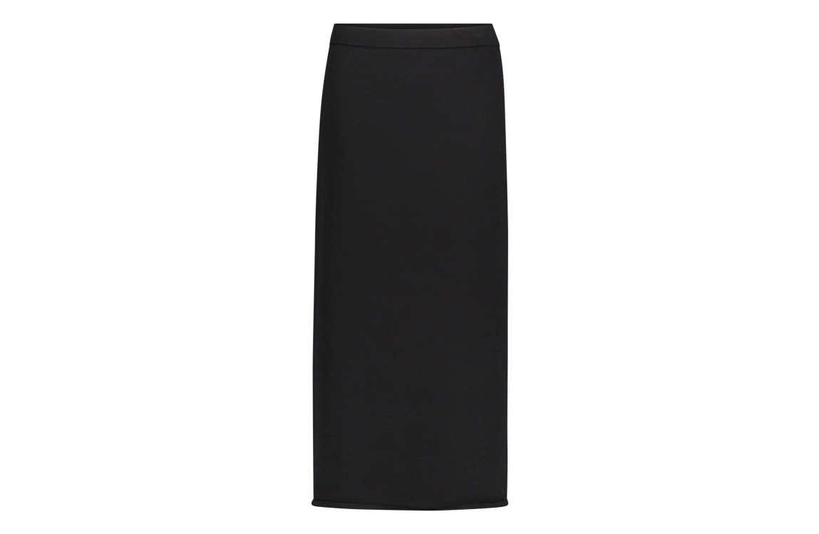 Betty Barclay rok 95002907. Dit aangesloten model sluit door middel van een elastische boord en is aan de zijkant afgewerkt met een split. Deze zwarte rok van Betty Barclay is ribgebreid uitgevoerd.