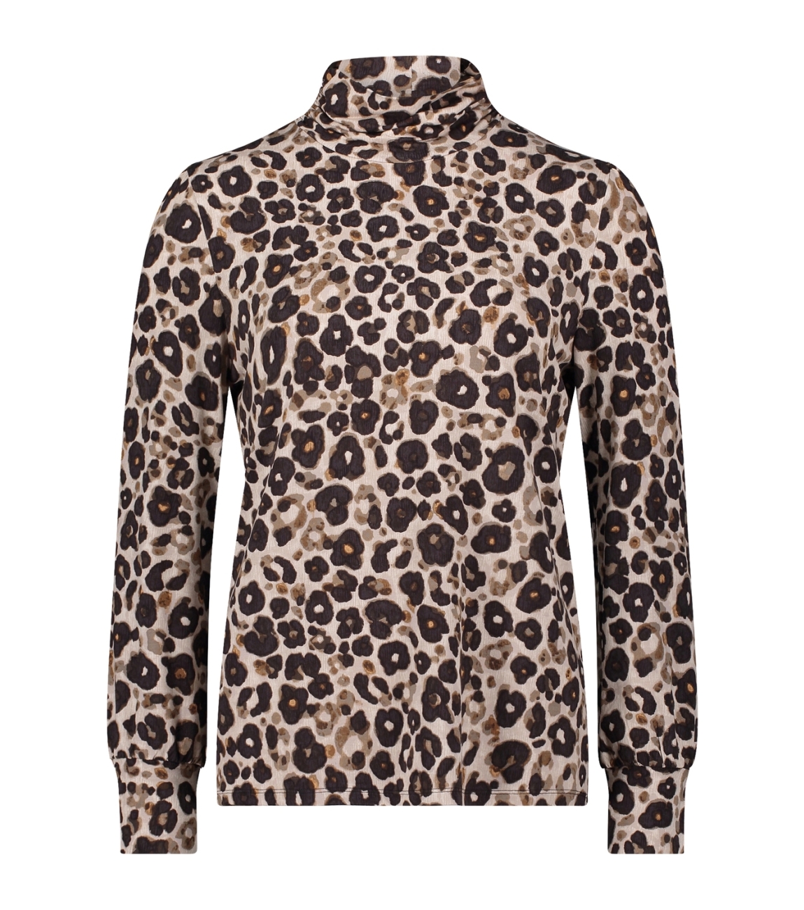 Betty Barclay shirt 26231490. Dit rechtvallende model heeft een col en lange mouwen. Deze taupekleurige shirt van Betty Barclay is all-over bewerkt met een panterprint in verschillende tinten en is uitgevoerd in stretchkwaliteit.