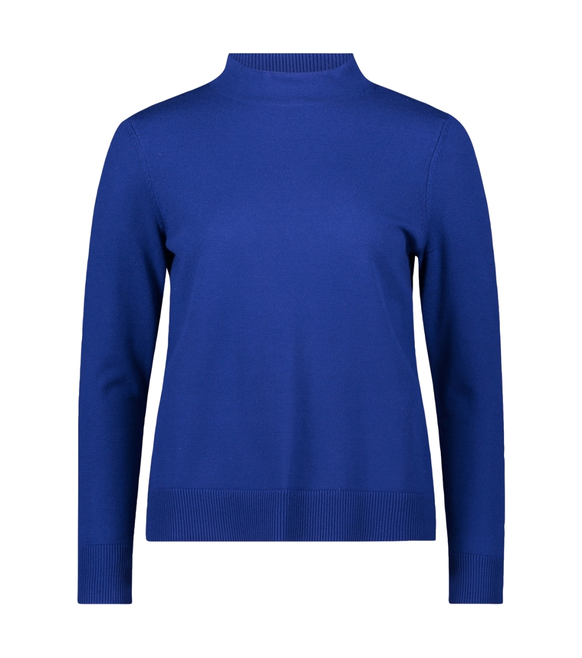 Betty Barclay trui 53432907. Dit rechtvallend blauwe model is voorzien van een wijde turtle neck en heeft lange mouwen.
