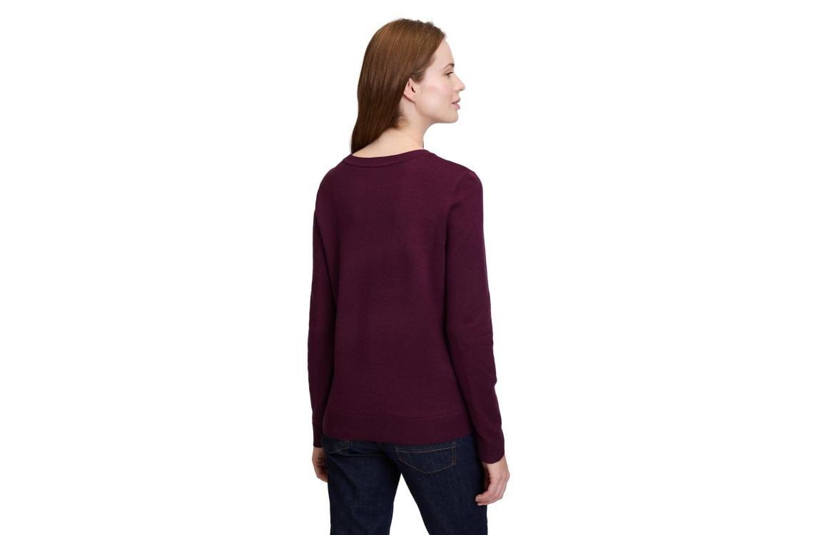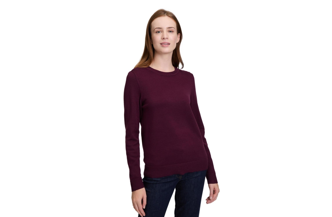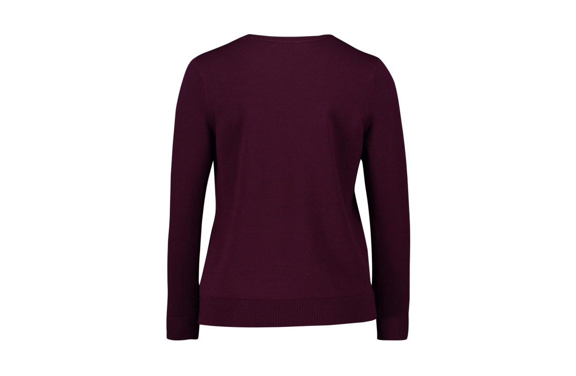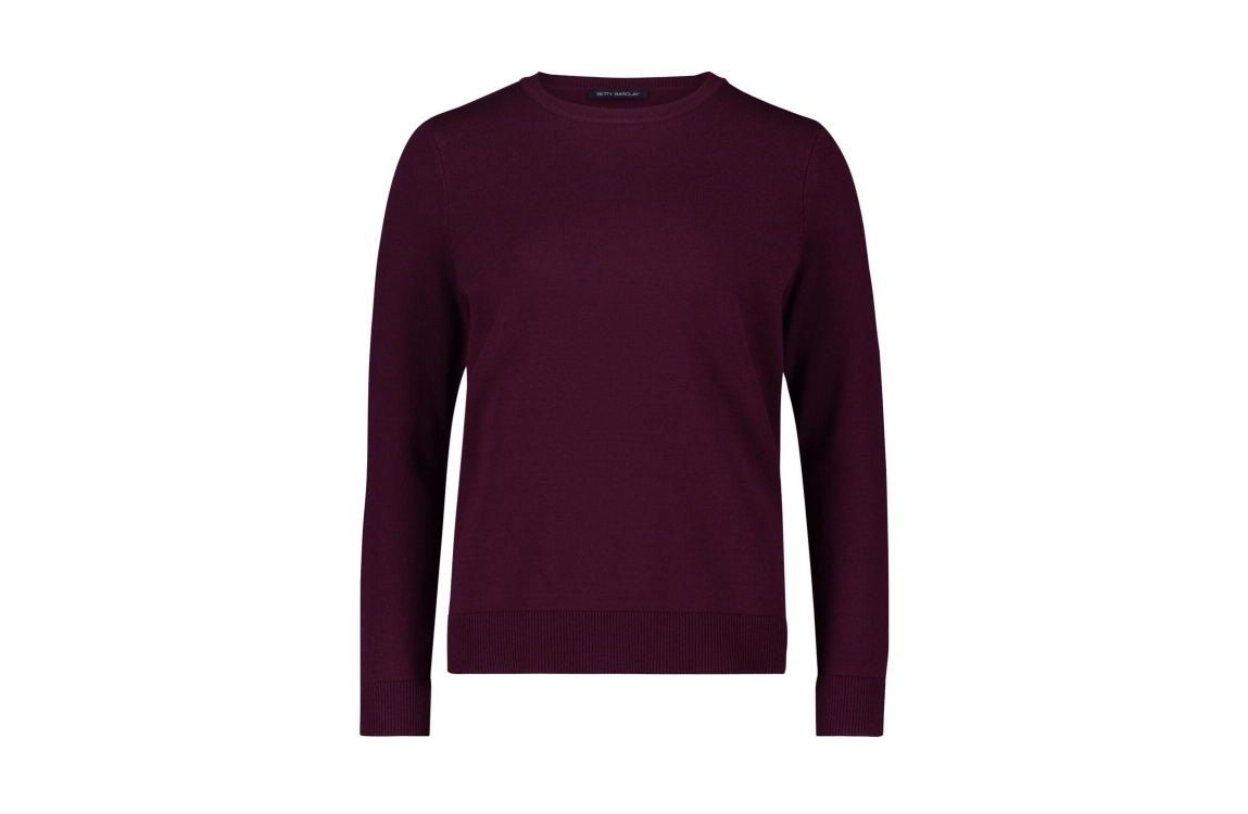 Betty Barclay pullover 51782907. Dit rechtvallend aubergine kleurig model is voorzien van een ronde hals en heeft lange mouwen.