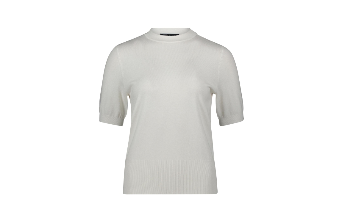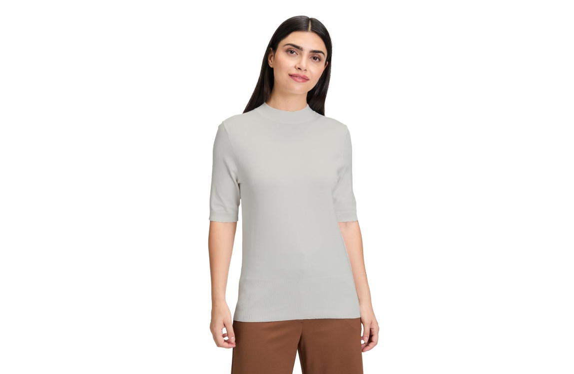 Betty Barclay pullover 5286/1440/1014. Dit rechtvallend model heeft een turtleneck en korte mouwen. Deze off-white pullover van Betty Barclay heeft ribgebreide boorden en is uitgevoerd in stretchkwaliteit.