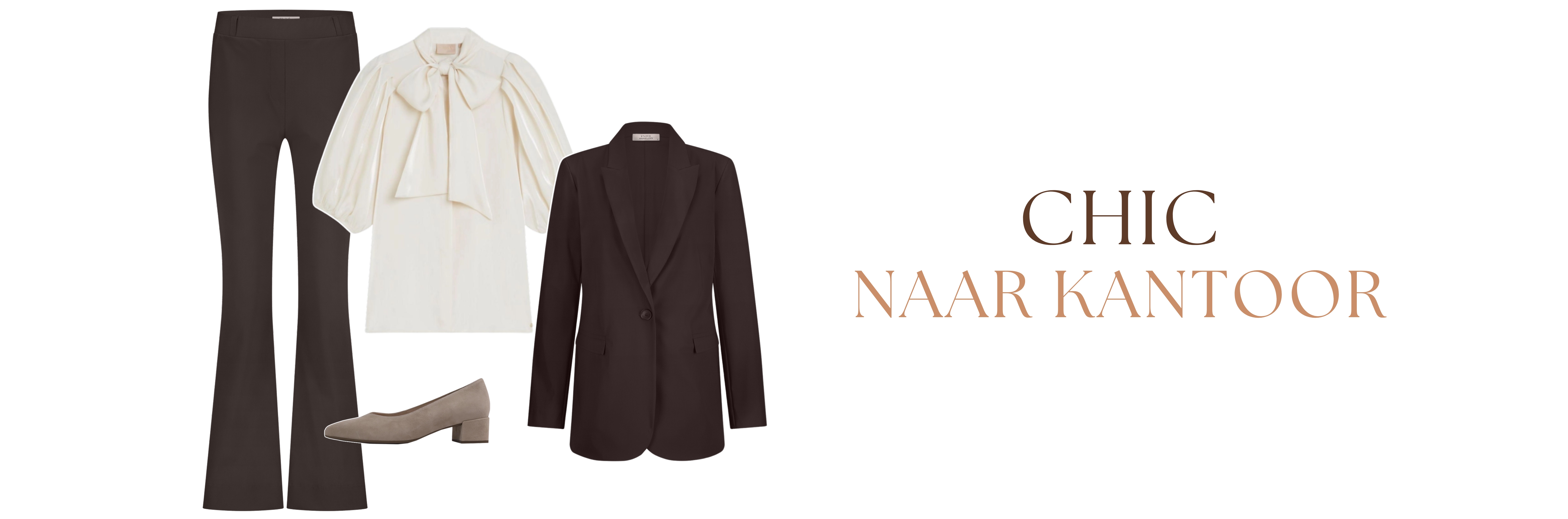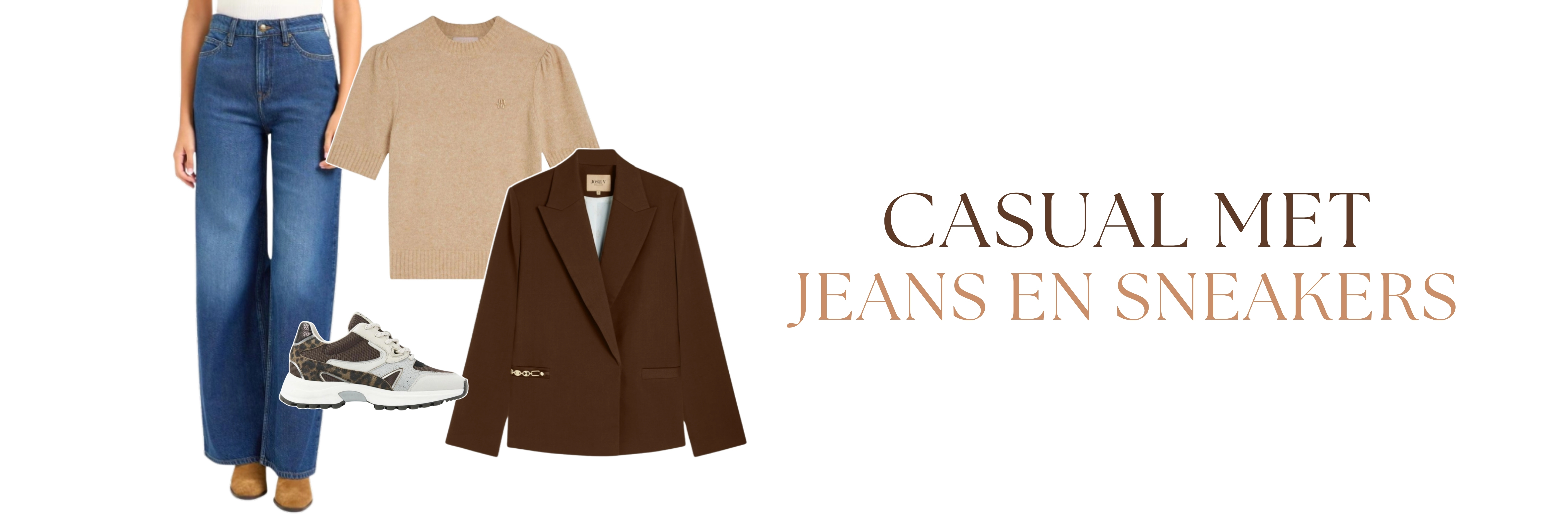 Voor een nettere look is een bruine blazer combineren met een pantalon ideaal. Bruin is tegenwoordig een verrassend sterk alternatief voor zwart: het oogt warmer en zachter. Draag er een blouse onder voor een professionele uitstraling, ook als je de blazer even uittrekt. Voeg een subtiel accessoire toe, zoals gouden sieraden of een sjaaltje in een neutrale tint. Maak de outfit af met pumps, nette loafers of enkellaarsjes en je bent helemaal office-ready.