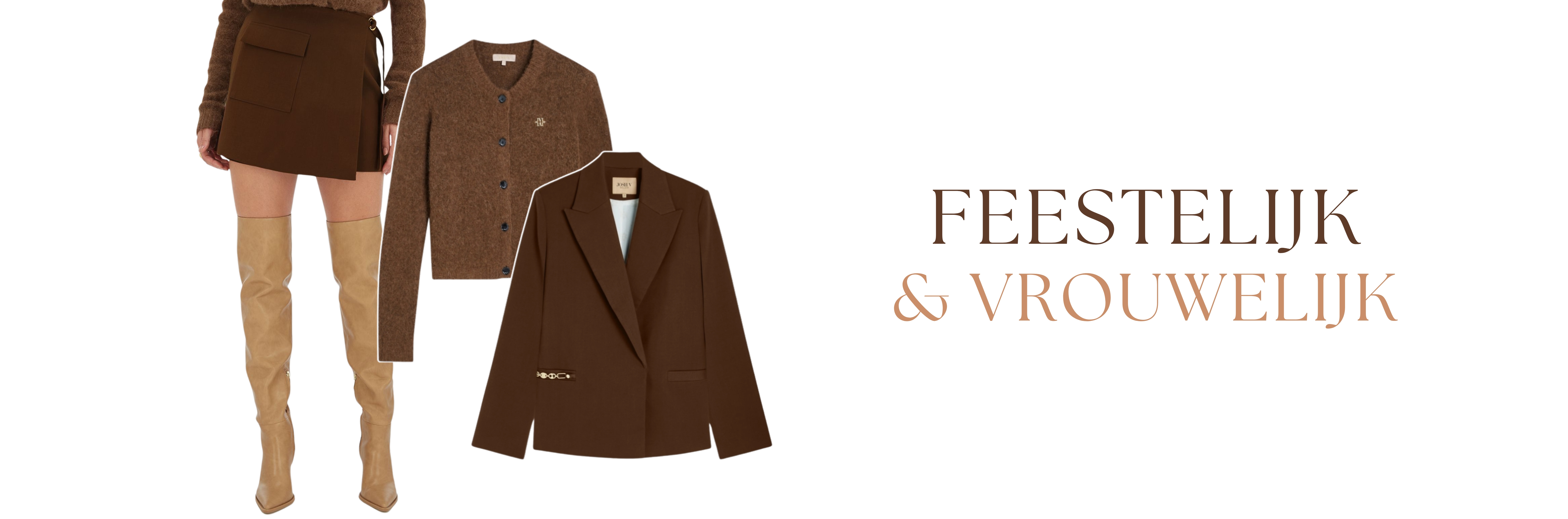 Heb je een feestje op de planning? Draag de blazer over een midi-jurk of rok in een zachte kleur of met een subtiele print. Wil je echt een statement maken? Combineer dan je blazer met een skort in dezelfde tint. Maak de look af met bruine laarzen of enkellaarsjes. Voor de koudere dagen kun je er een sjaal bij dragen, warm en chic tegelijk.