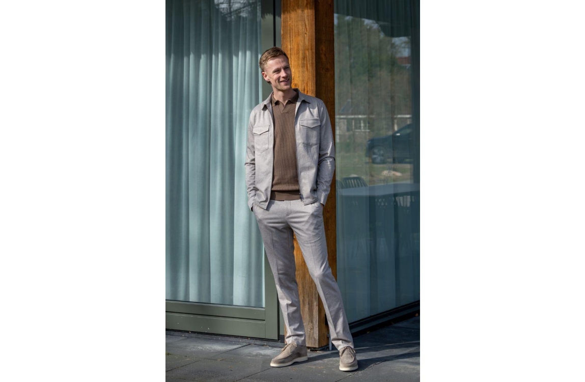 Born with Appetite Boed Shirtjacket 2002 Tabacco. Dit rechtvallende model heeft een kraag en lange mouwen. Deze grijs/bruine overshirt van Born with Appetite sluit aan de voorzijde door middel van een rits en is voorzien van twee klepzakken.