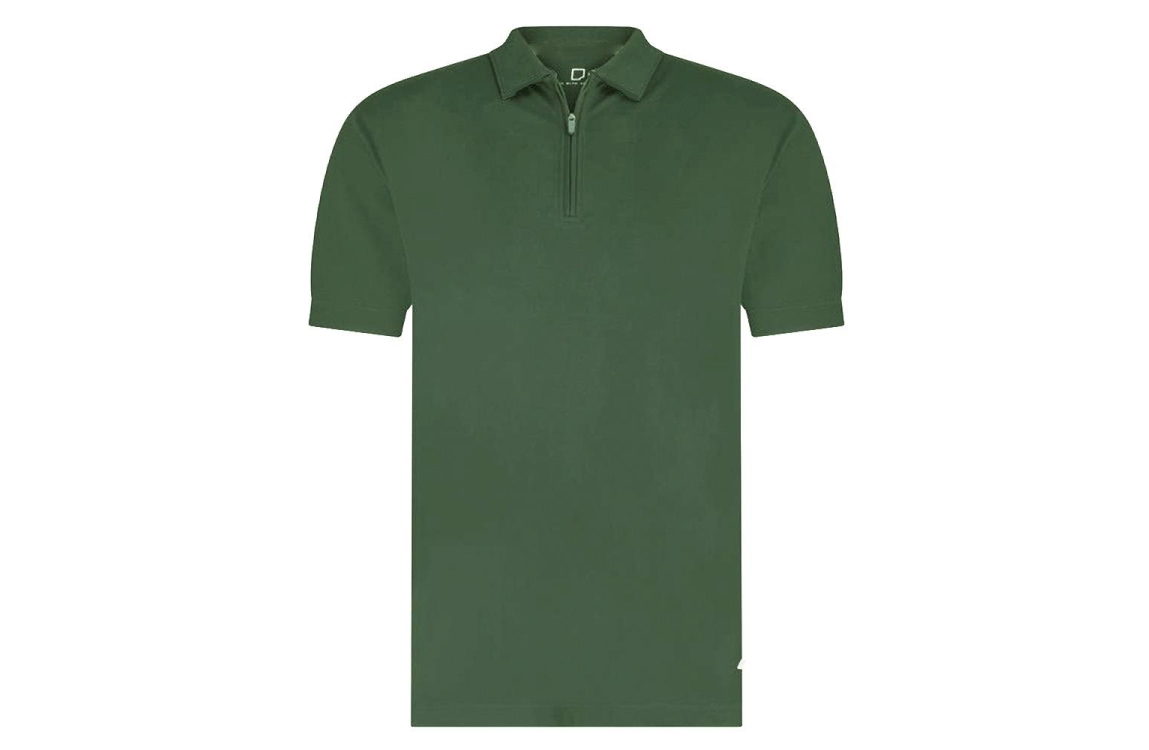 Born with Appetite polo BWA00006DA31 3007. Dit rechtvallende model heeft een kraag met ritssluting en korte mouwen. Deze donkergroene polo van Born with Appetite is uitgevoerd in een fijn gebreide kwaliteit, bevat stretch en is afgewerkt met geribde boorden.